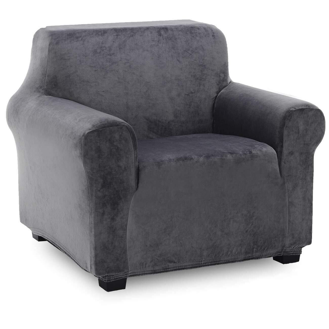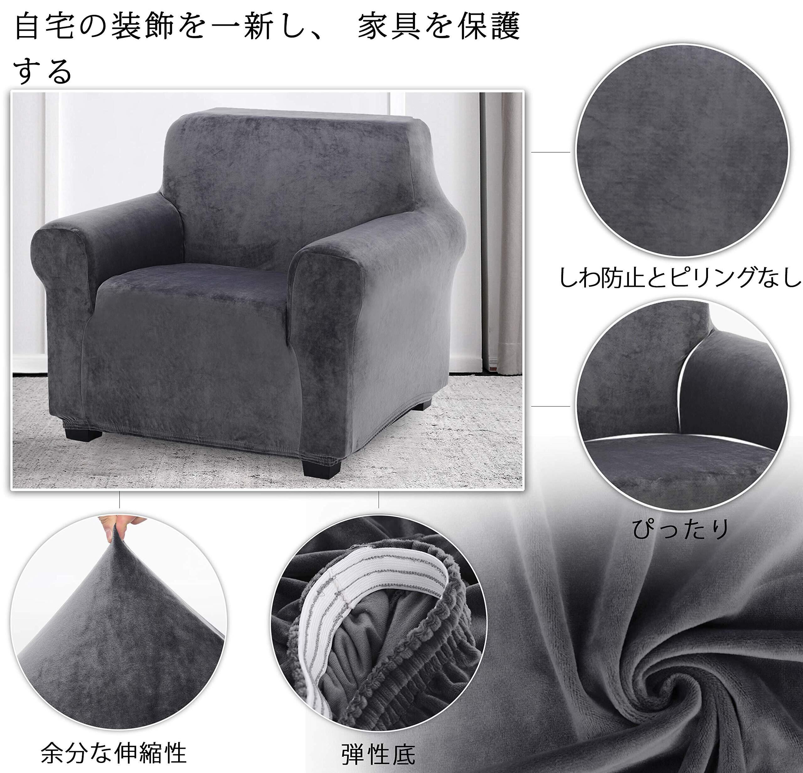 TIANSHU フランネル ソファーカバー 1人掛け 肘付き 無地 縦横弾力 ストレッチ フィットタイプ 肘付き 滑り止め 柔らかい 伸縮素材伸び良く 四季適用 超便利(1人掛け,グレー)