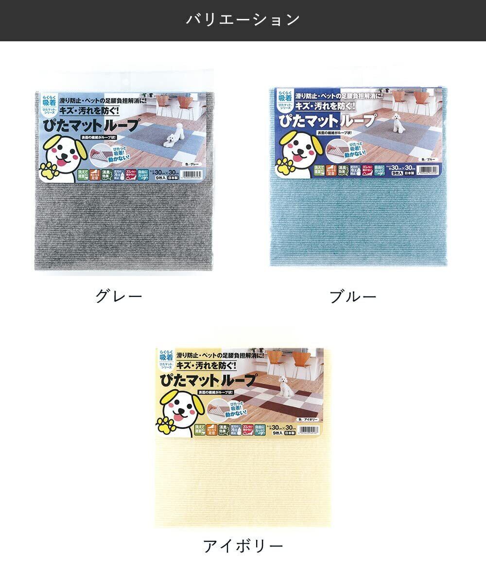 ワタナベ工業 国産タイルカーペット 吸着ぴたマット ループ 9枚組 30X30cm グリーン