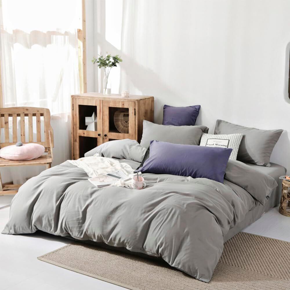 【新春セール】【Amazon.co.jp 限定】 布団カバー 綿 100% シングル 3点セット 寝具カバーセット 洋式・和式兼用 無地 掛け布団カバー ボックスシーツ 枕カバー ベッド用 布団用 高密度生地 布団カバーセット 洗い替え速乾タイプ 防ダニ (シングル・ライトグレー)