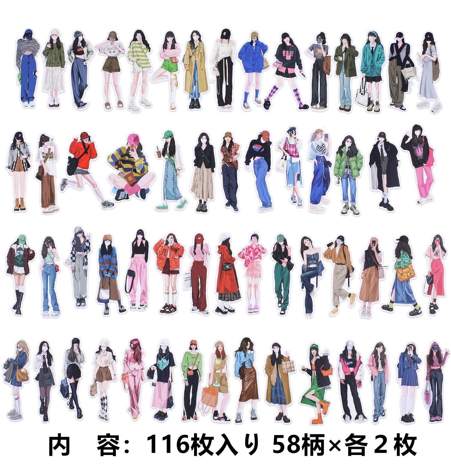 【コラージュ シール 女の子 - 大量なセット 】 約100枚入りかわいい女の子のステッカーセット。様々なファッションでおしゃれなステッカーです。