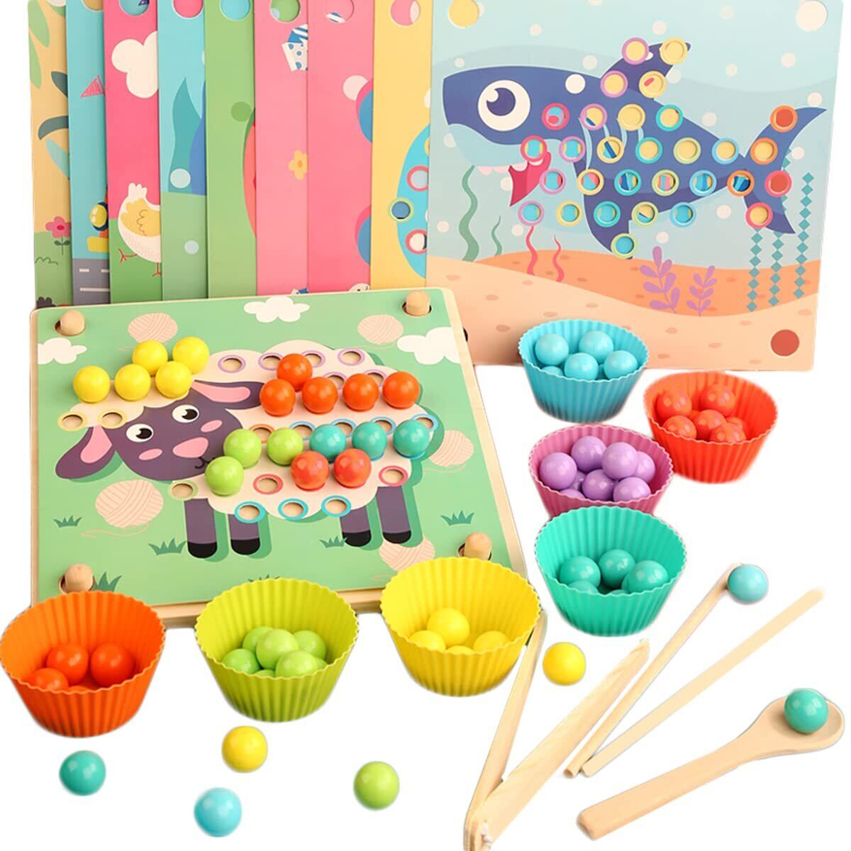 【Play2-指先を使う知育おもちゃ】箸でビーズを挟む、スプーンでビーズを取る、クリップでビーズ挟むなど操作は集中力・思考力・バランス感覚が身につきます。遊びを通じてお子様の手の器用さを鍛え、手と目の協調力を高めて、お箸の使い方も訓練できます。