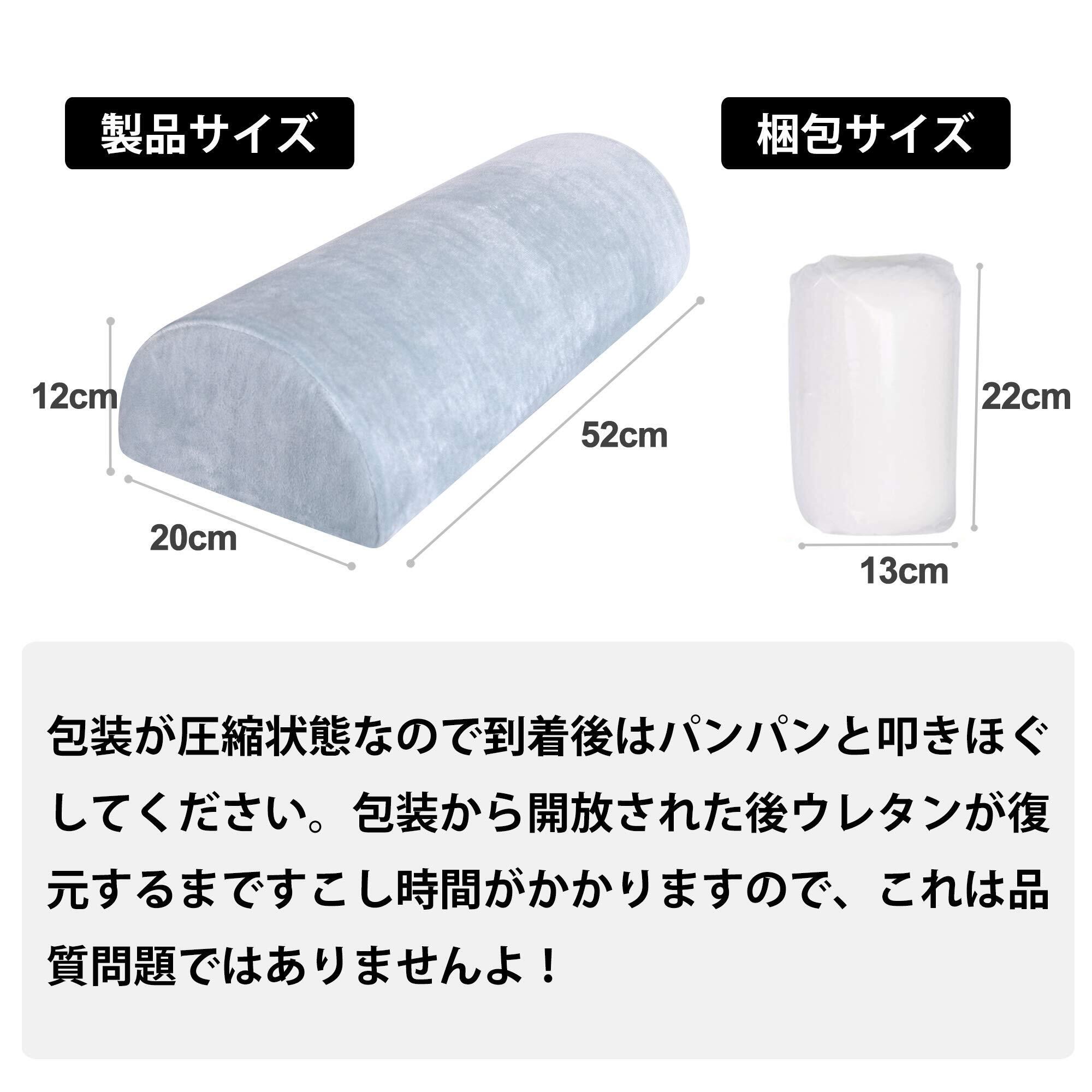 サイズ&仕様:約52×20×12cm【重さ】約520g【素材】 本体:高反発ウレタン カバー:ベロア生地。カバー取り外し可能ですので、洗濯は超簡単。