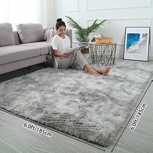 Kinganda カーペット ラグ ふわふわ 北欧 ラグマット 2畳 シャギー 滑り止め付 抗菌 防音 防ダニ 防カビ 折り畳み 柔らか 長方形 冷房 床暖房対応 オールシーズン (185x185cm, ライトグレー)
