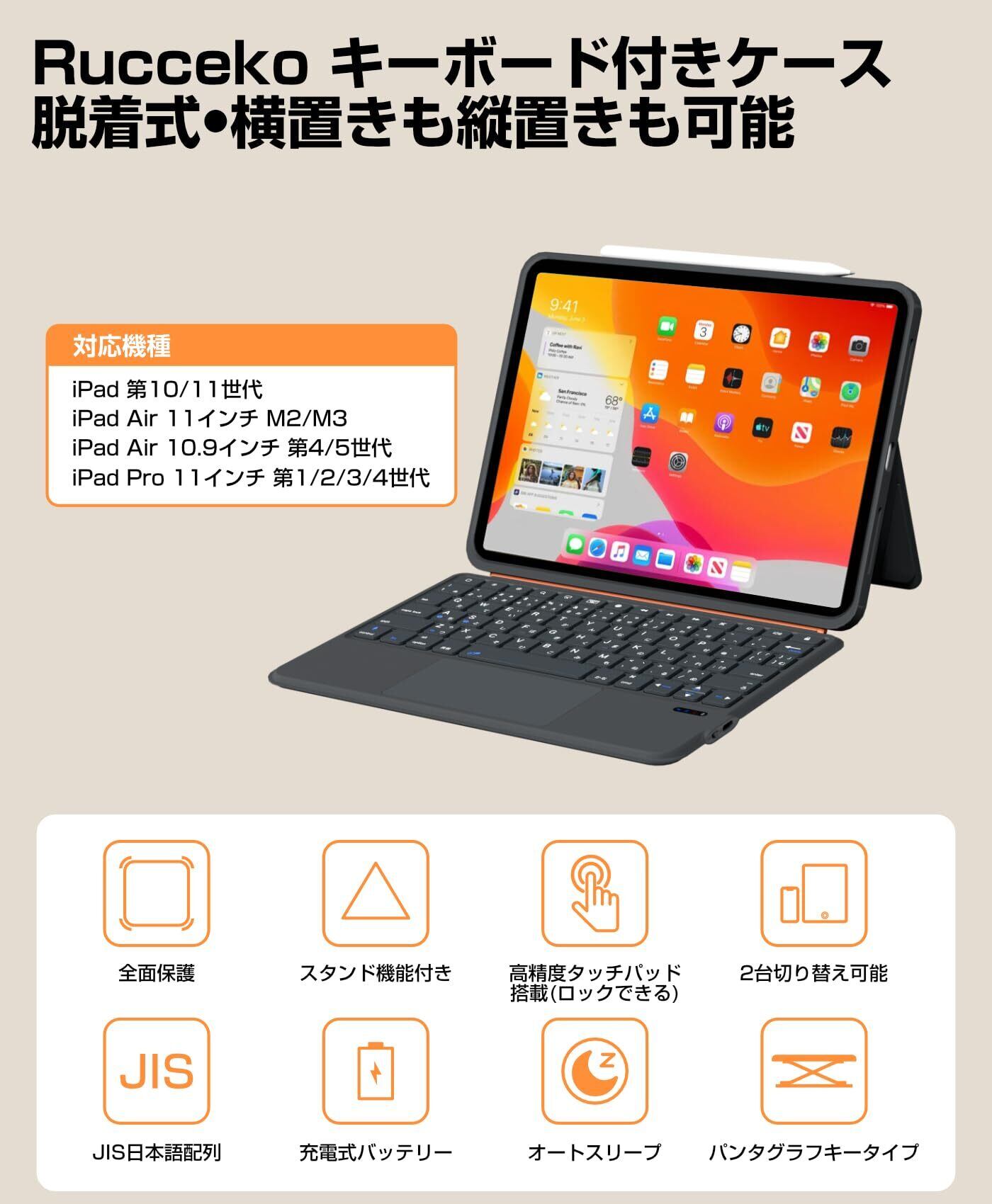 【数量限定】Rucceko iPad A16 11世代/10世代 キーボード付きケース iPad Air 11インチ M3/M2 10.9インチ 第4/5世代 iPad Pro 11インチ 第1/2/3/4世代対応 脱着式 横/縦置き 高精度タッチパッド付き 日本語配列 bluetooth 5.3 キーボード ワイヤレス 2台iOSデバイスと接続可能 ブルートゥース keyboard アイパッド 薄型 グレー