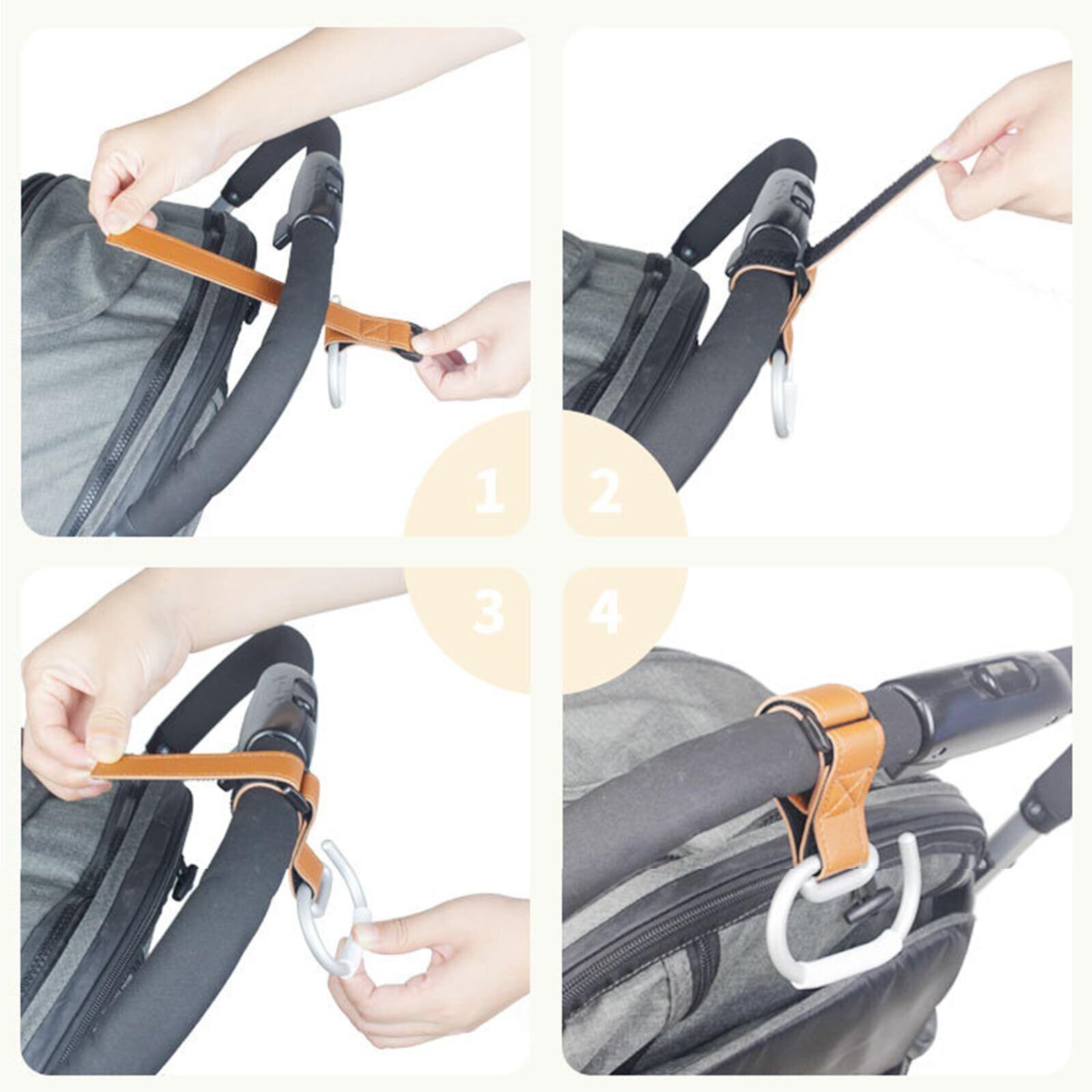 【幅広い適用】調節可能な滑り止めストラップは、すべてのトロリーに対応。フック部分の厚み&幅、幅のある流行りのマザーズバックの持ち手もフィットします、様々なものをしっかりと掛けられ、乳母車、自転車のハンドル、キッチン周り、パイプヘッド、荷物、ベビーカーなどに適しています。