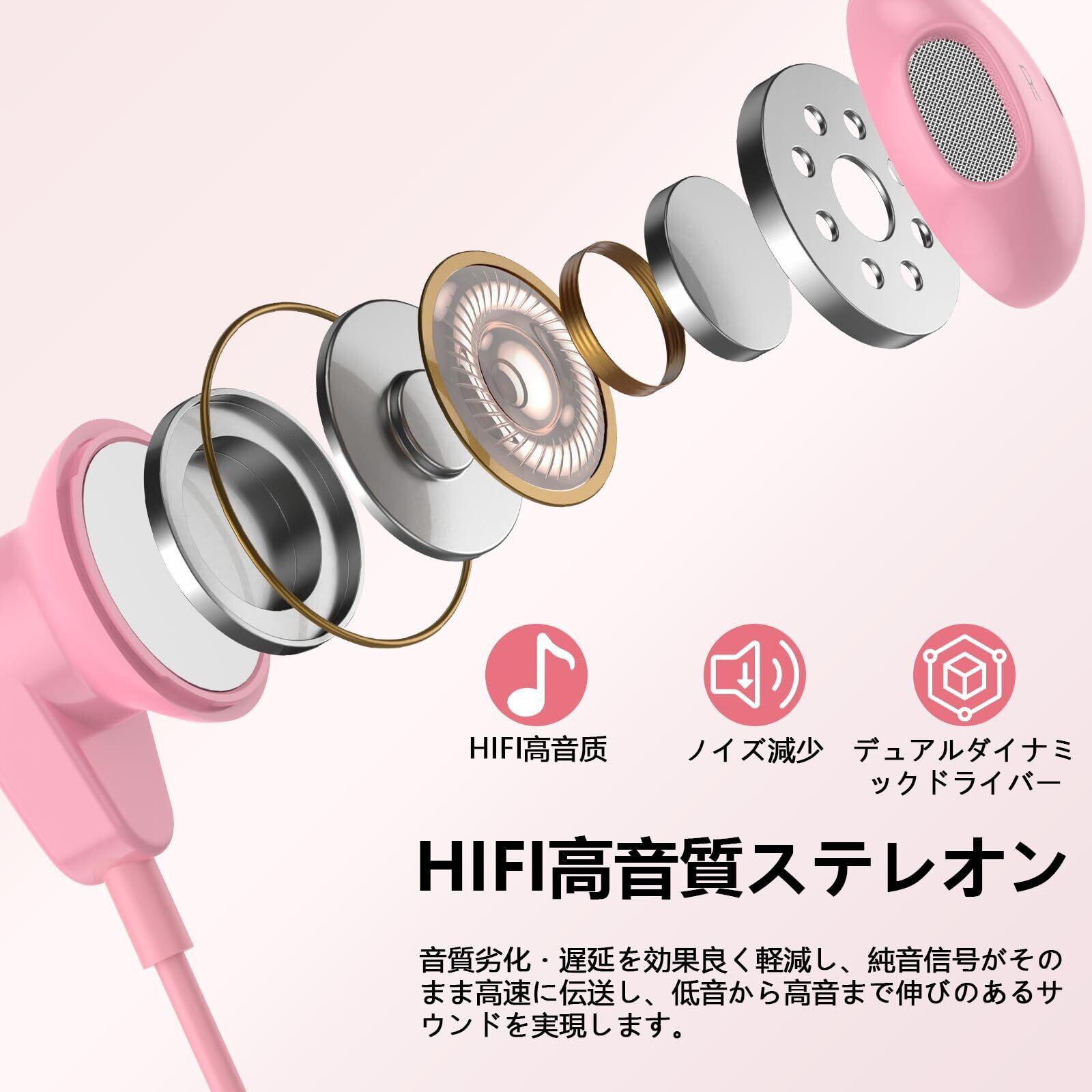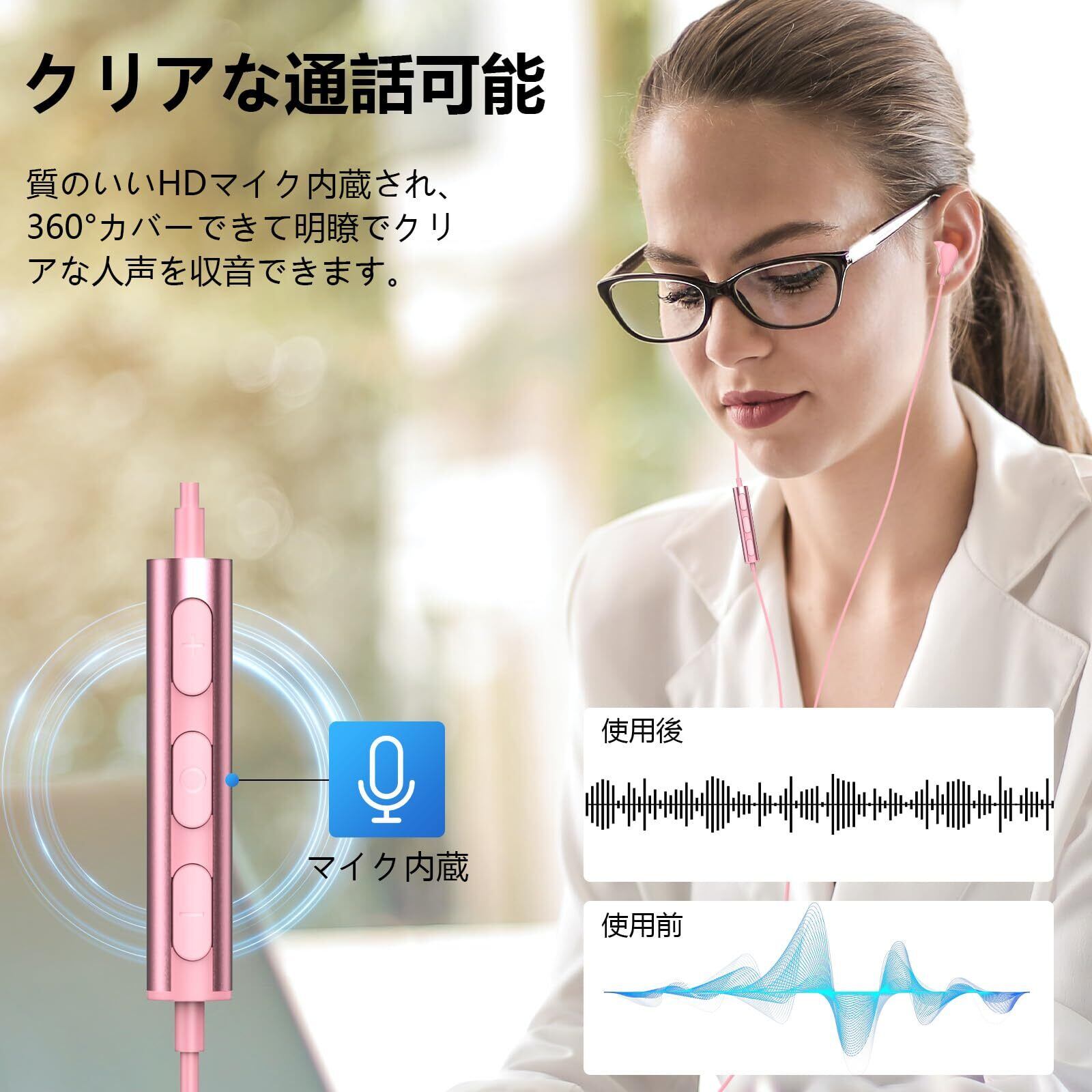 ASKUBSKU イヤホン 有線イヤホン マイク付き 3.5mmジャック4極 リモコン操作 通話対応 音量調節 インナーイヤー型ステレオイヤフォン パソコン PC 用 いやほん テレワーク/YouTube/ZOOM/Skype/ビデオ会議用ゲーミングイヤホン Switch/PS3/PS4/MP3 4/Android/iPhoneなど3.5mmジャック使用のデバイスに対応 ギフトピンク