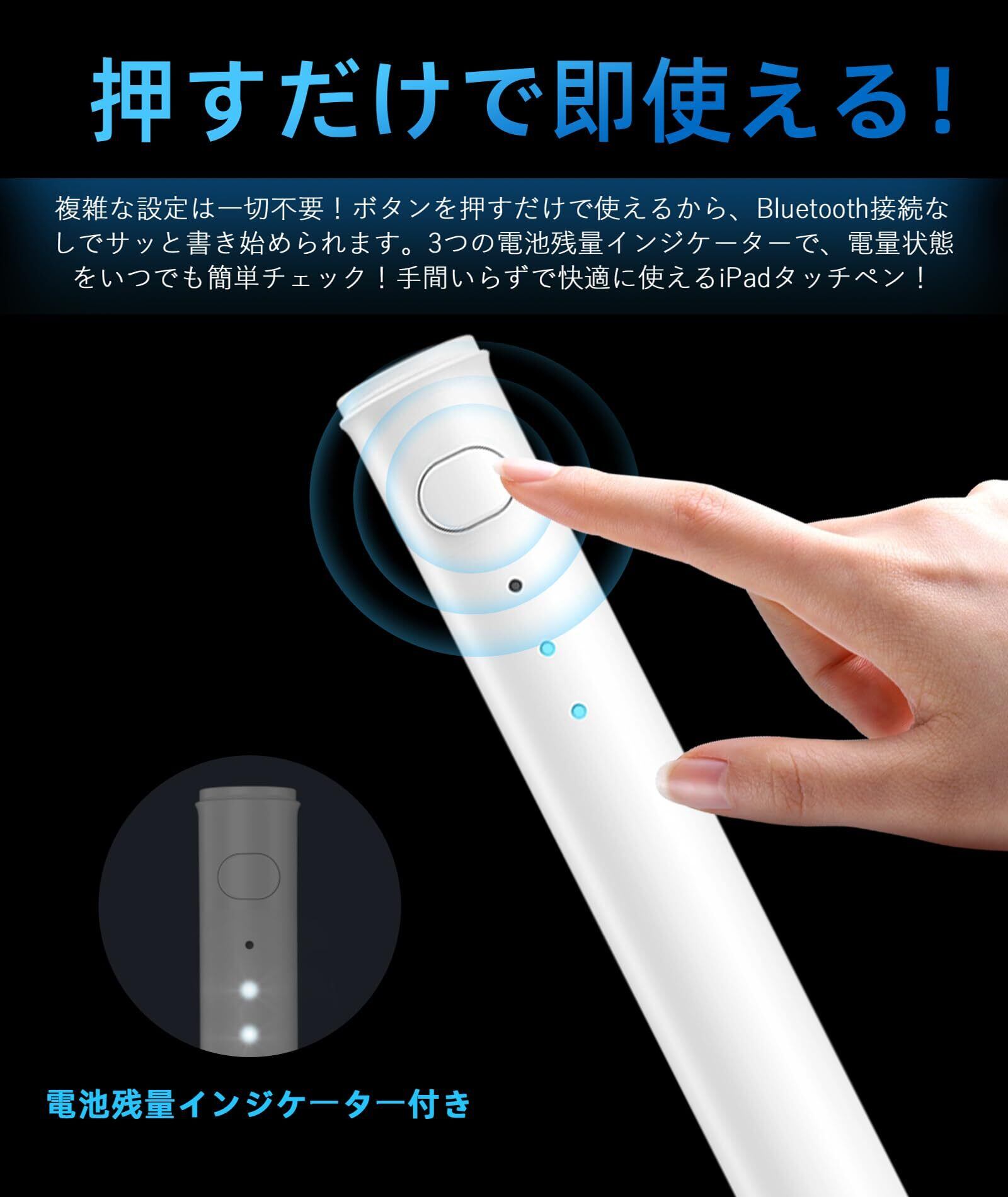 【2022最新】【磁気充電 & Type-C急速充電】USGMOBI iPad タッチペン 2018年~2025年発売iPad対応 アップルペンシル 互換 電量表示 誤作動防止 傾き検知 高精度 無遅延 耐摩 デザイン用 ペン先2枚付属 ホワイト