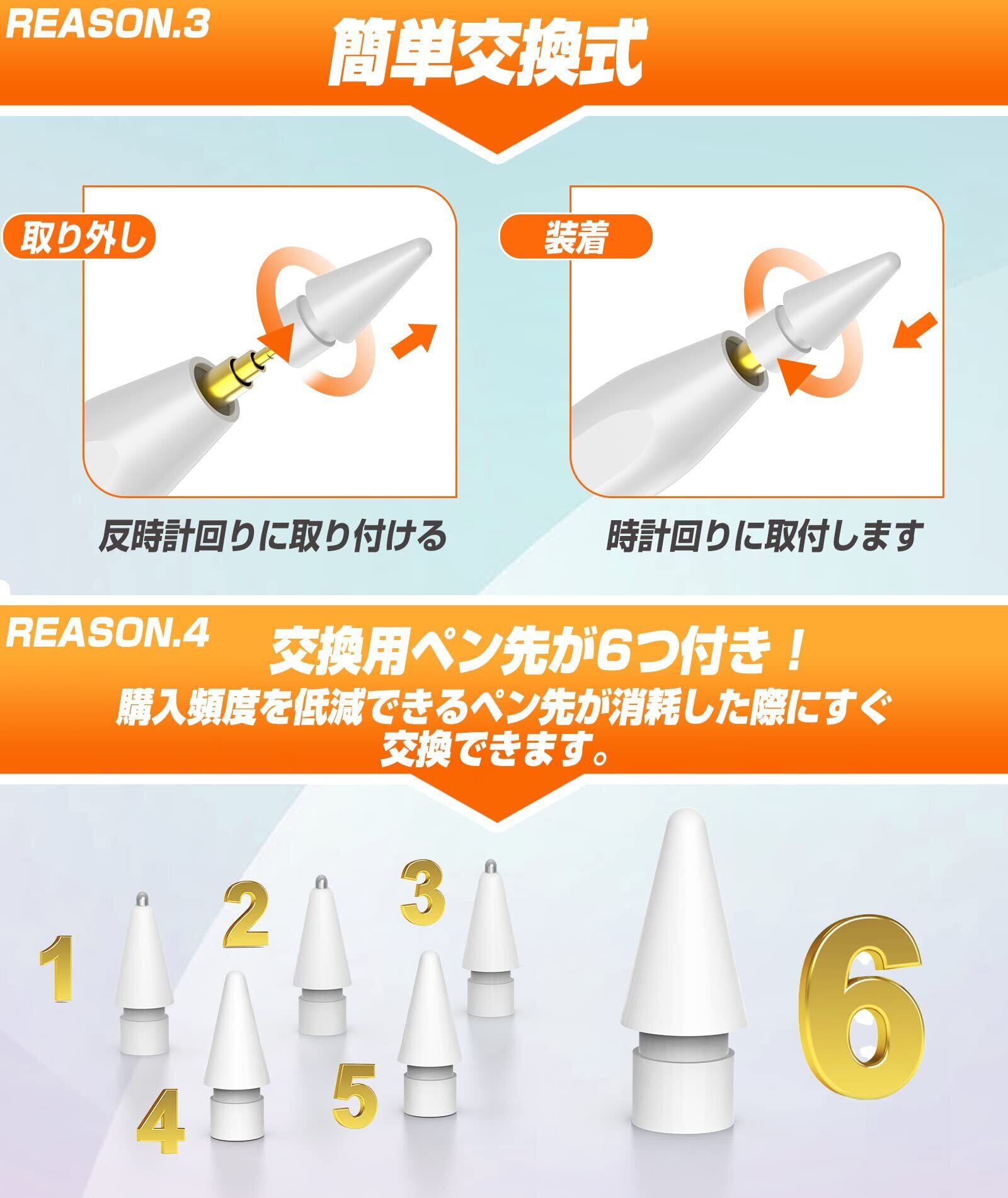 【簡単交換式&6個セット】ペン先は回転させて簡単に交換でき、緩みにくく、しっかりと固定できます。6個セットで購入頻度を低減できるペン先が消耗した際にすぐ交換できます。経年劣化によるペン先の磨耗を気にせず、長持ちで使えます。