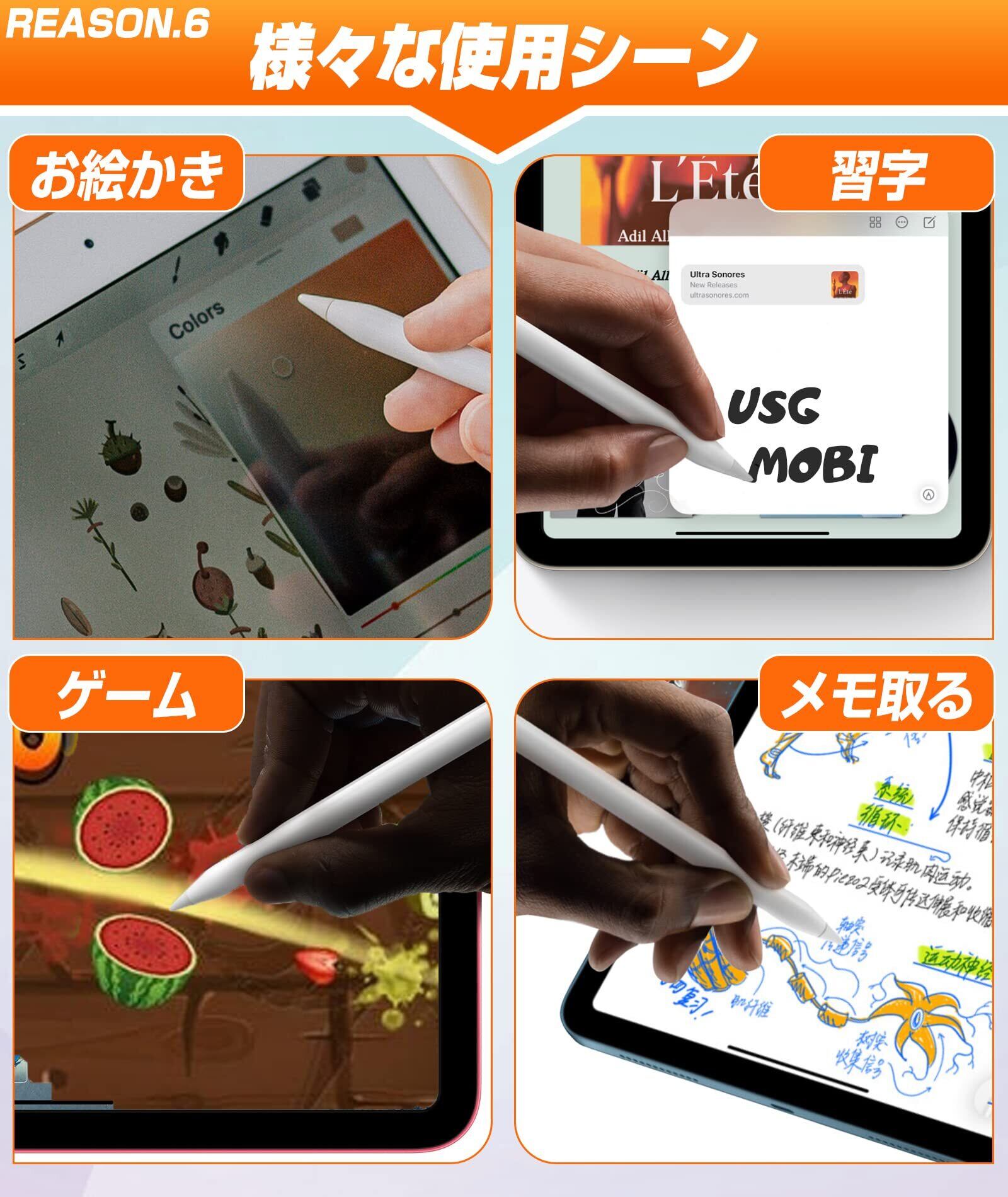 【高い互換性】Apple Penci第1世代と第2世代の両モデルとUSGMOBI「BK-02」ペンにも対応しています。iPadにフィルムを貼り付けても使用できます。ペーパーライクフィルムと一緒に使用すれば、紙に書いているような操作感を感じられます。