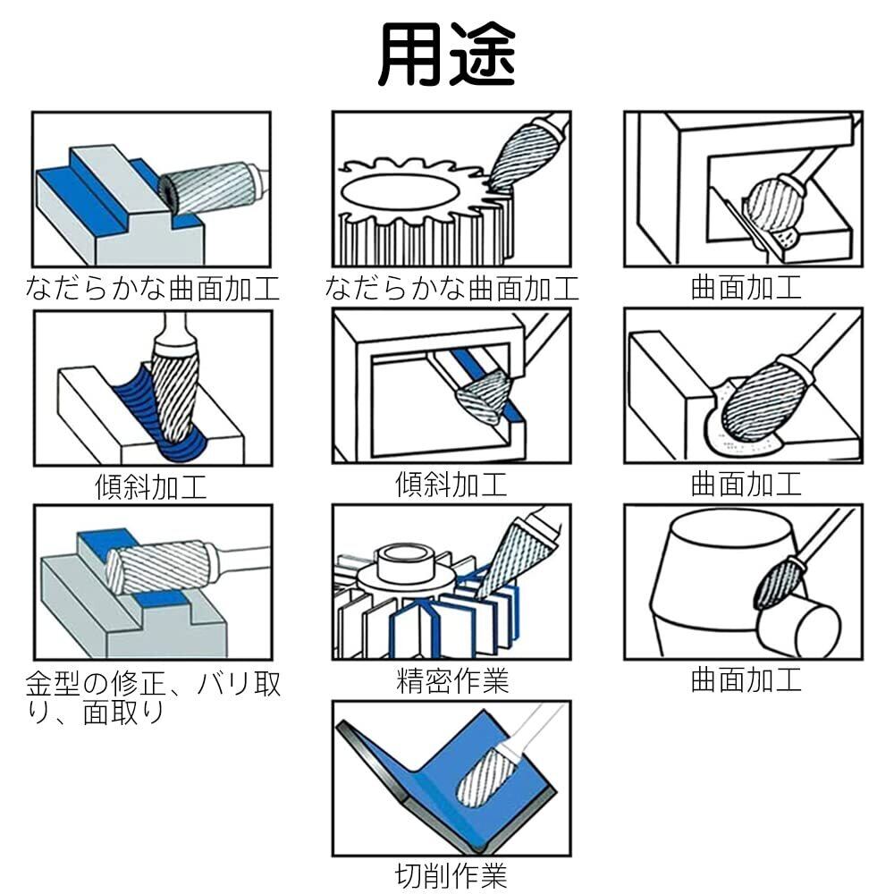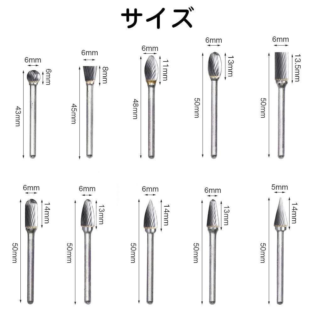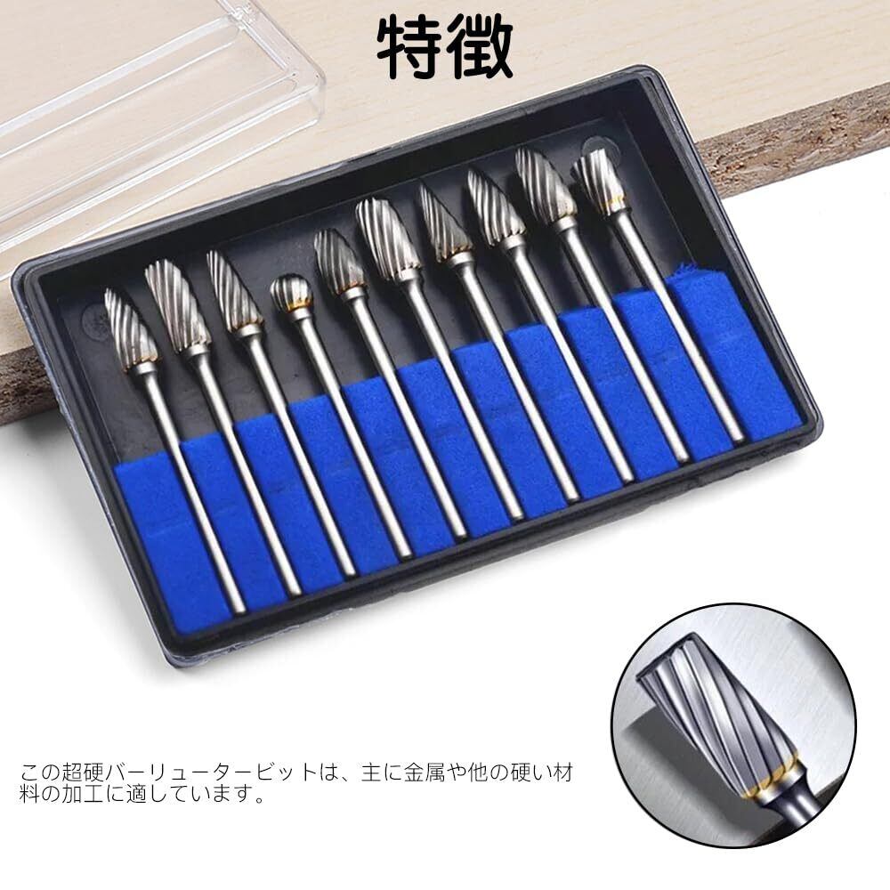 【2022最新】サムコス 超硬バー リューター ビット 10種類 ケース付10本セット タングステン製 超硬ドリルビット (3mm軸刃幅6mm, B)