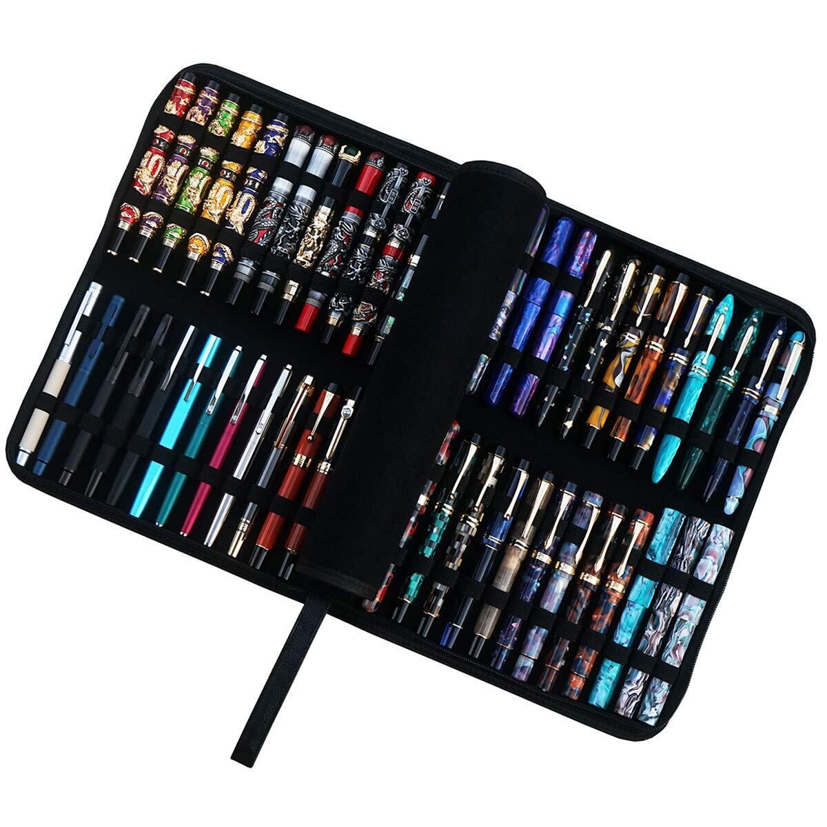 万年筆ケース 48 本 大容量 ブラック PU レザー ケース 万年筆 ケース 収納