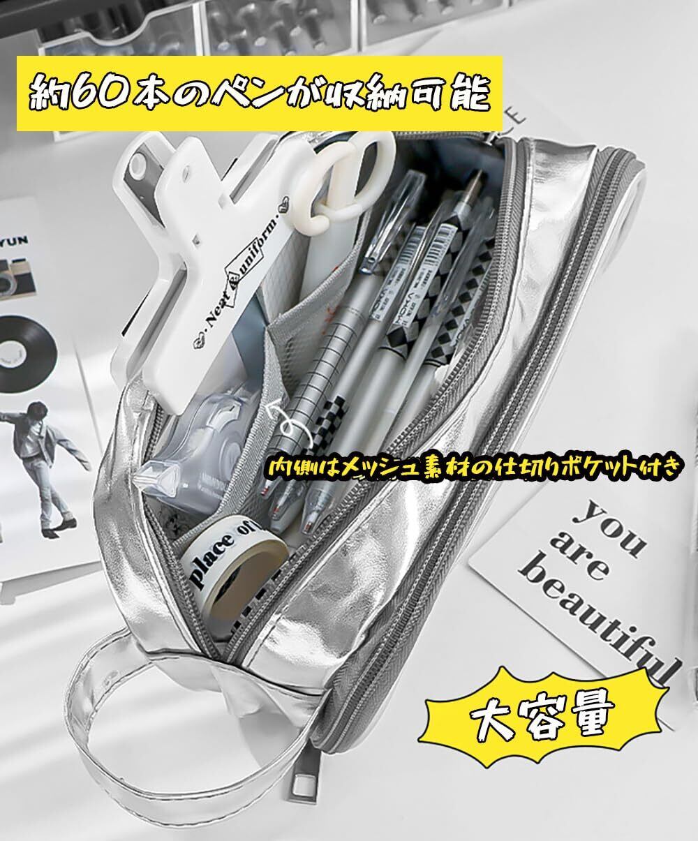 猫仙人 ペンケース 筆箱 ペンホルダー ファスナー付き 筆入れ 鉛筆入れ ペンポーチ シンプル 入学 文房具 小物入れ 大容量 銀色 痛バッグ風ペンケース
