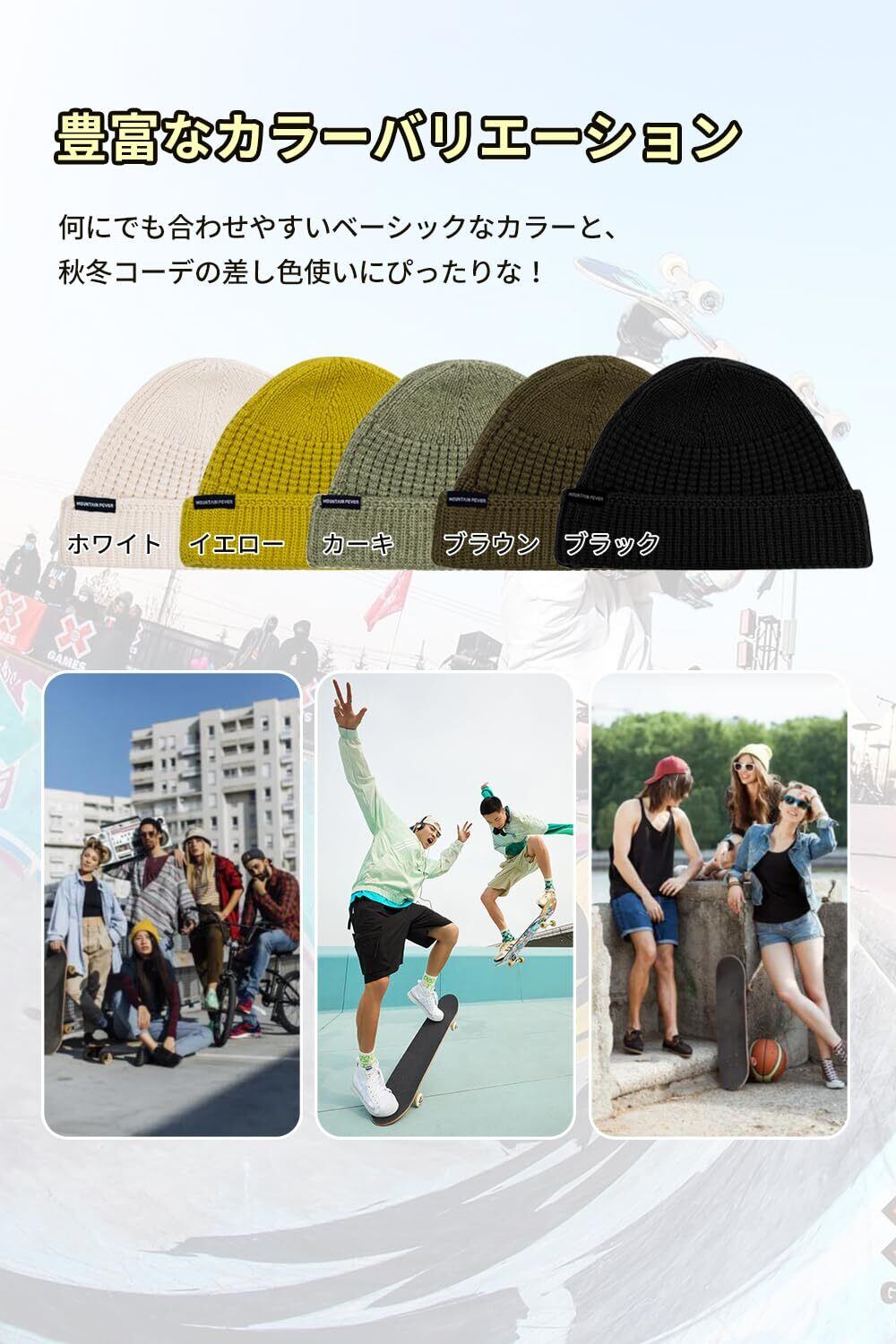 ・特徴:厚手のニット素材は伸縮性があり、男女兼用デザインで秋冬のコーデにぴったり。アウトドアや登山にも最適なおしゃれアイテムです。