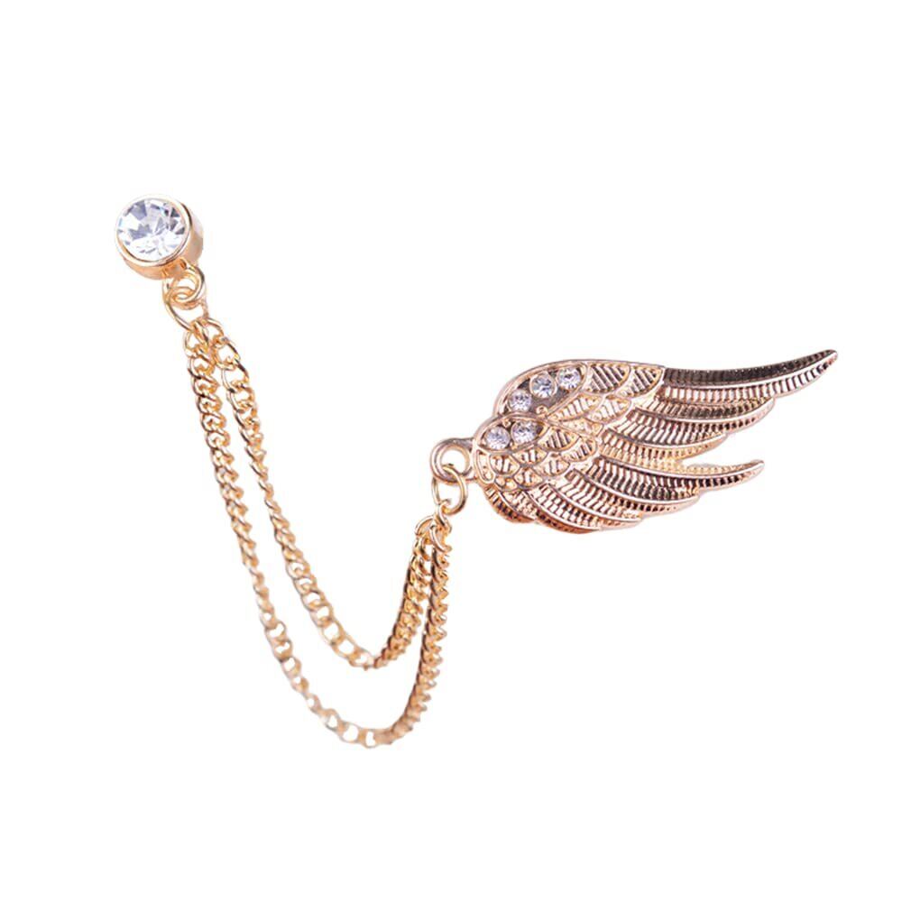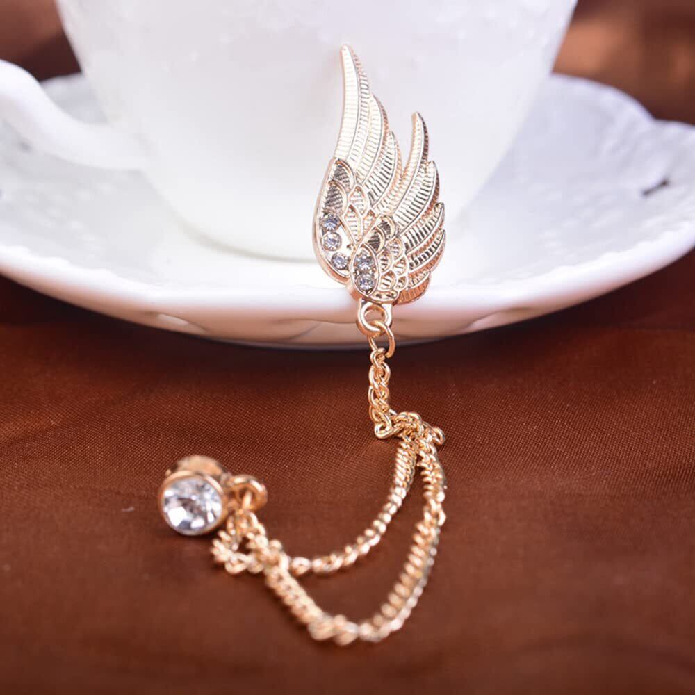 WOWTAC ラペルピン ブローチ 翼 羽根 ゴールド シルバー チェーン アクセサリー ピンバッジ スーツ 結婚式 天使