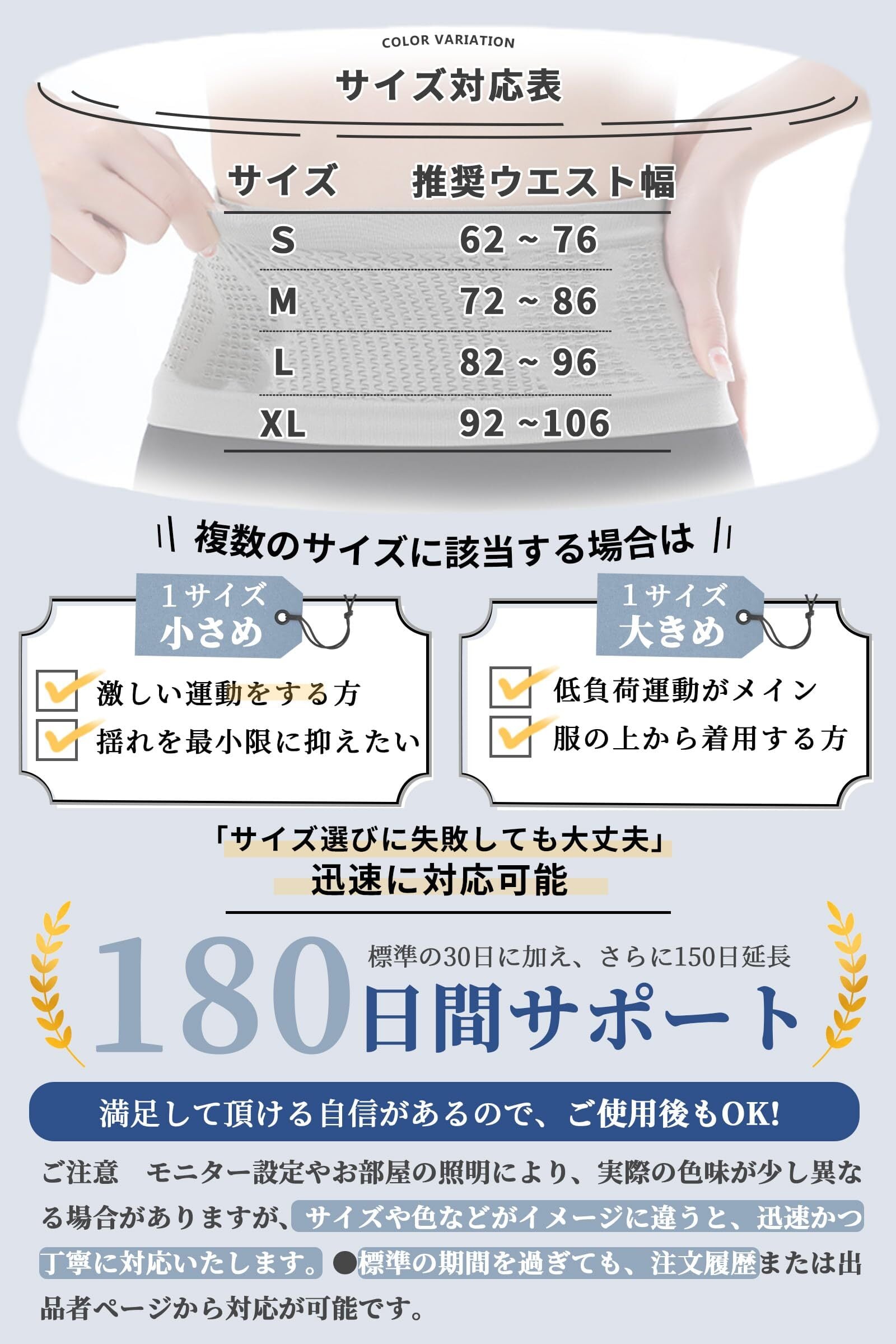 【サイズ選びの失敗なし】4色×4サイズ展開。万が一サイズや色がご期待に沿わない場合も、30+150日以降もも構いません