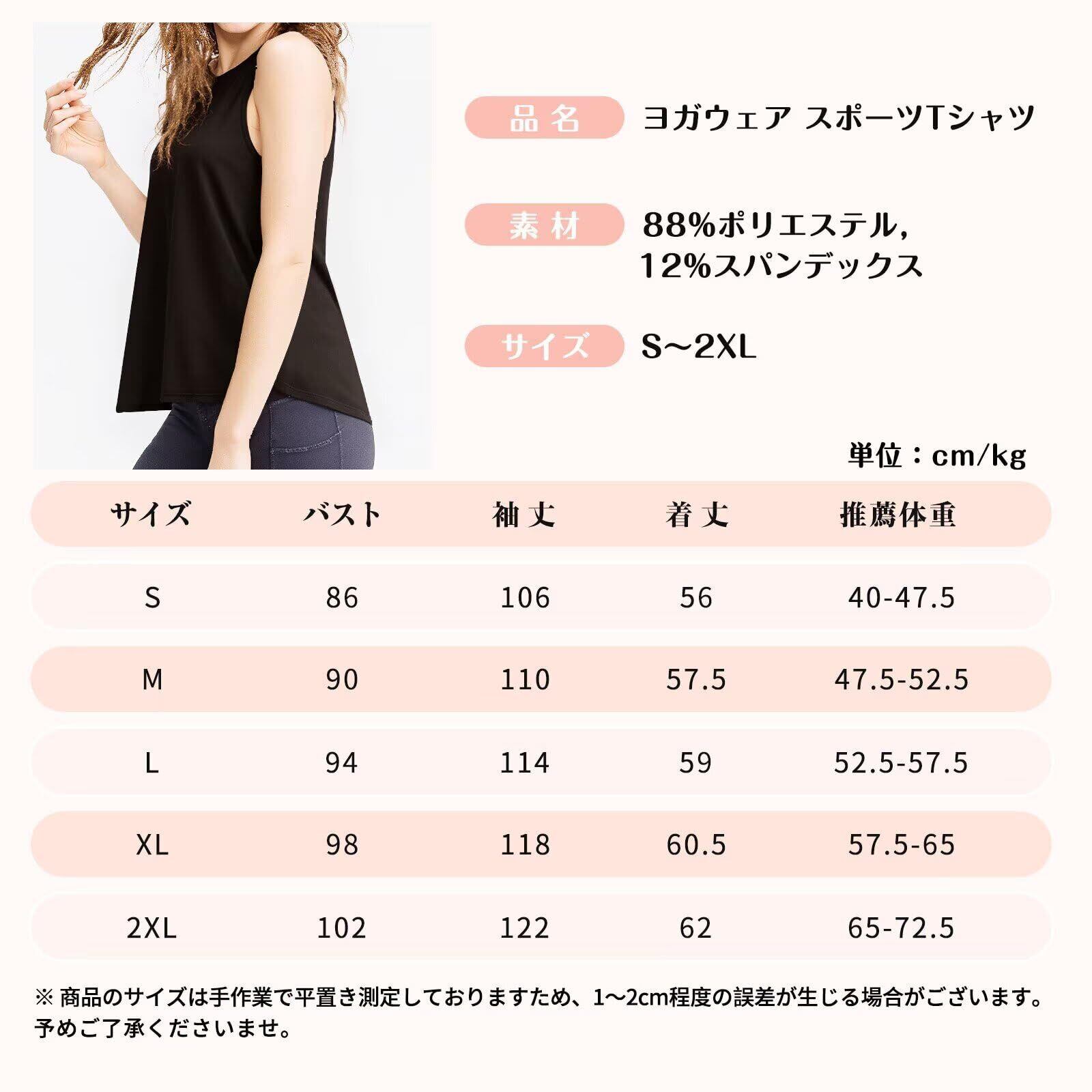 ・特徴:冷感素材を使用しており、暑い日でもさらっとした着心地を提供します。また、ノースリーブデザインは腕の動きを妨げず、ストレッチも自在。運動中の通気性も良好で、快適にトレーニングを楽しめます。さらに、ゆったりとしたフィット感で、着脱も簡単です。