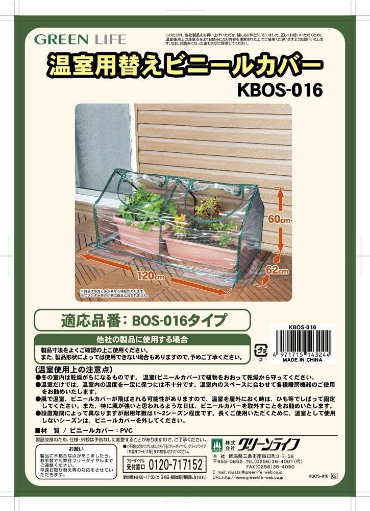 グリーンライフ ビニール温室 替カバー グリーン KBOS-016