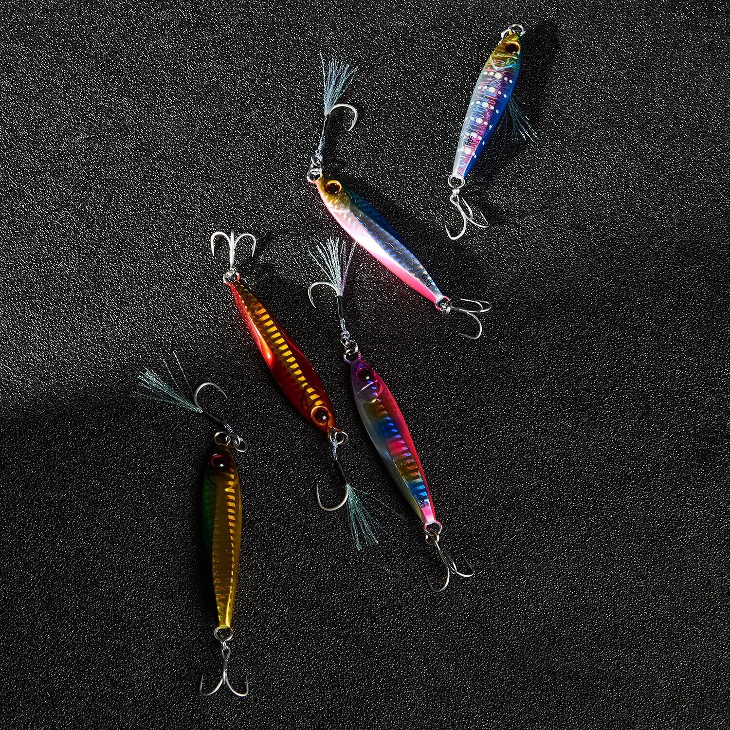 ・特徴:30g、40g、60gの3つのウェイトと5色のカラーバリエーションが用意されており、シチュエーションに応じた使い分けが可能です。また、そのデザインは水中でのアクションが非常に効果的で、リアルな動きでフィッシュイーターを引き寄せます!手軽に使えるセット内容は初心者から上級者まで幅広くご満足いただけるでしょう。