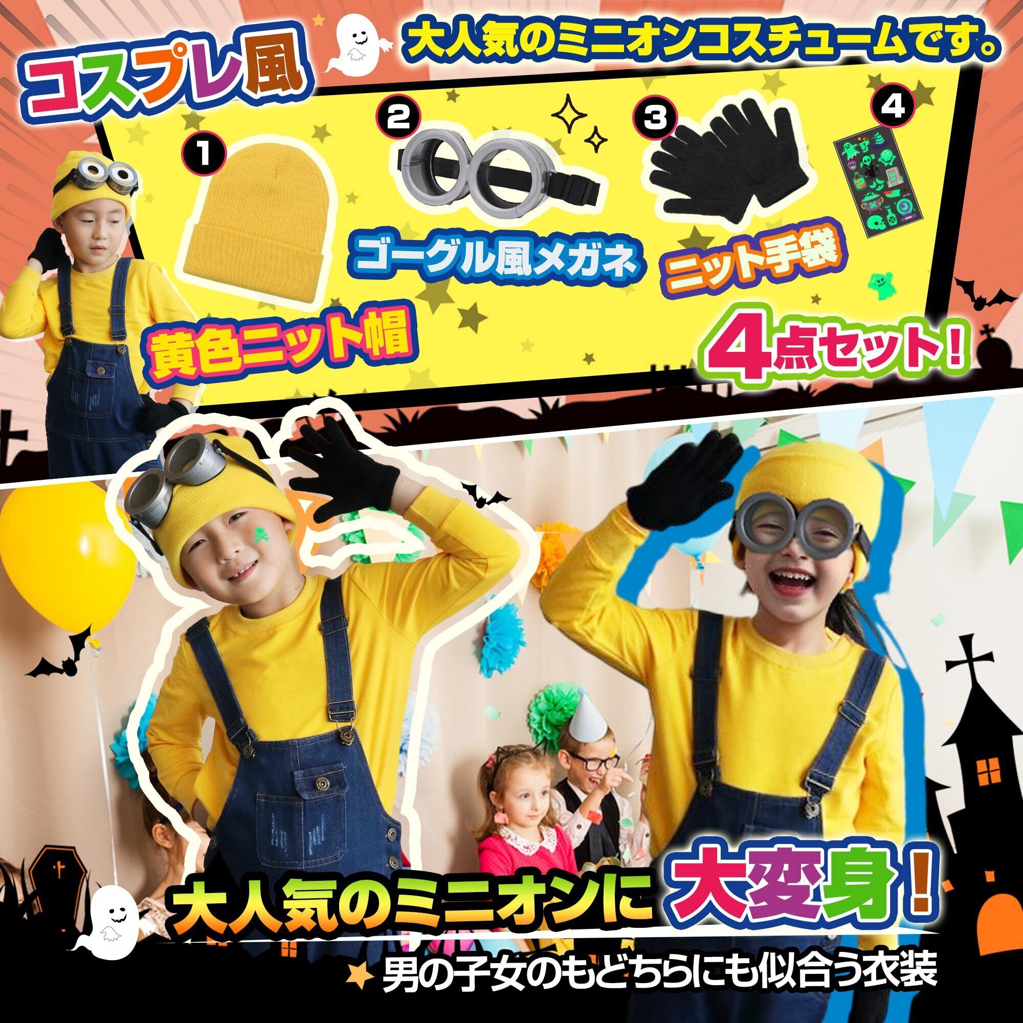 [GOKEI] ハロウィン ミニオン コスプレ 子供 【黄色いニット帽 ゴーグル 手袋 3点セット】 ミニオンズ 仮装 キッズ コスチューム ミニオン用 子ども 男の子 女の子 クリスマス パーティー イベント