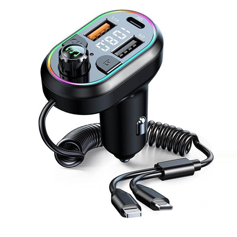 FMトランスミッター Bluetooth5.3 4in1 一体式 車載充電器 PD 30W+QC3.0急速充電 ハンズフリー通話 Bluetooth/U-ディスク対応 2つの音楽再生モード HI-FIロスレス音质 カーチャージャー 12V-24V車対応 LEDディスプレイ 電圧測定 過充電保護機能 1.2mケーブル付き