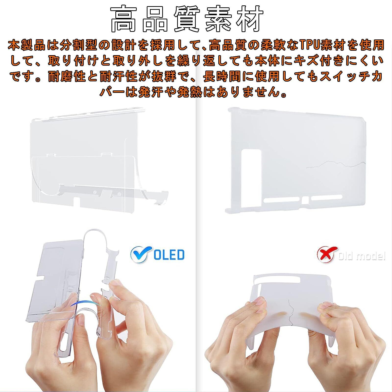 【高品質素材*着脱簡単】本製品は分割型の設計を採用して、高品質の柔軟なTPU素材を使用して、取り付けと取り外しを繰り返しても本体にキズ付きにくいです。耐磨性と耐汗性が抜群で、長時間に使用してもスイッチカバーは発汗や発熱はありません。switch 有機el 保護カバー 新しい超薄デザインで、着脱簡単。