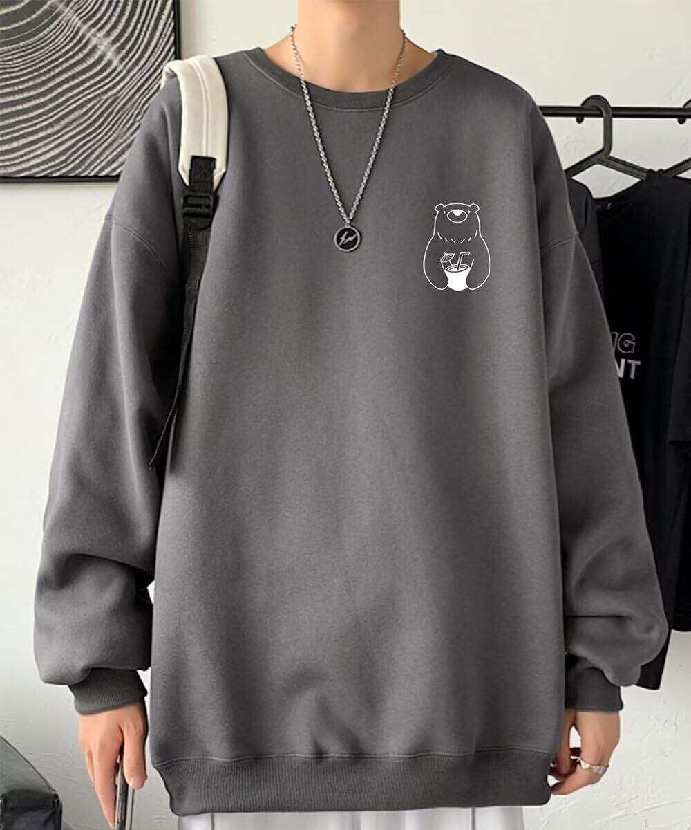 [Bligo] トレーナー メンズ 大きいサイズ パーカー クマ バック プリント Tシャツ 長袖 丸首 綿 秋服 カットソー ドロップショルダー オーバーサイズ ゆったり 可愛い カジュアル おしゃれ 無地 冬春服