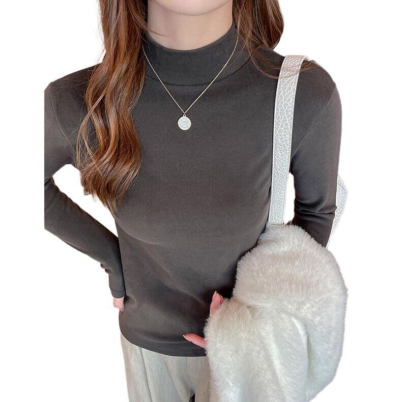 [AYILYFE] ハイネック トップス レディース Tシャツ 長袖 カットソー インナーシャツ インナー 無地 重ね着 保温防寒 春 秋 冬服 きれいめ おしゃれ