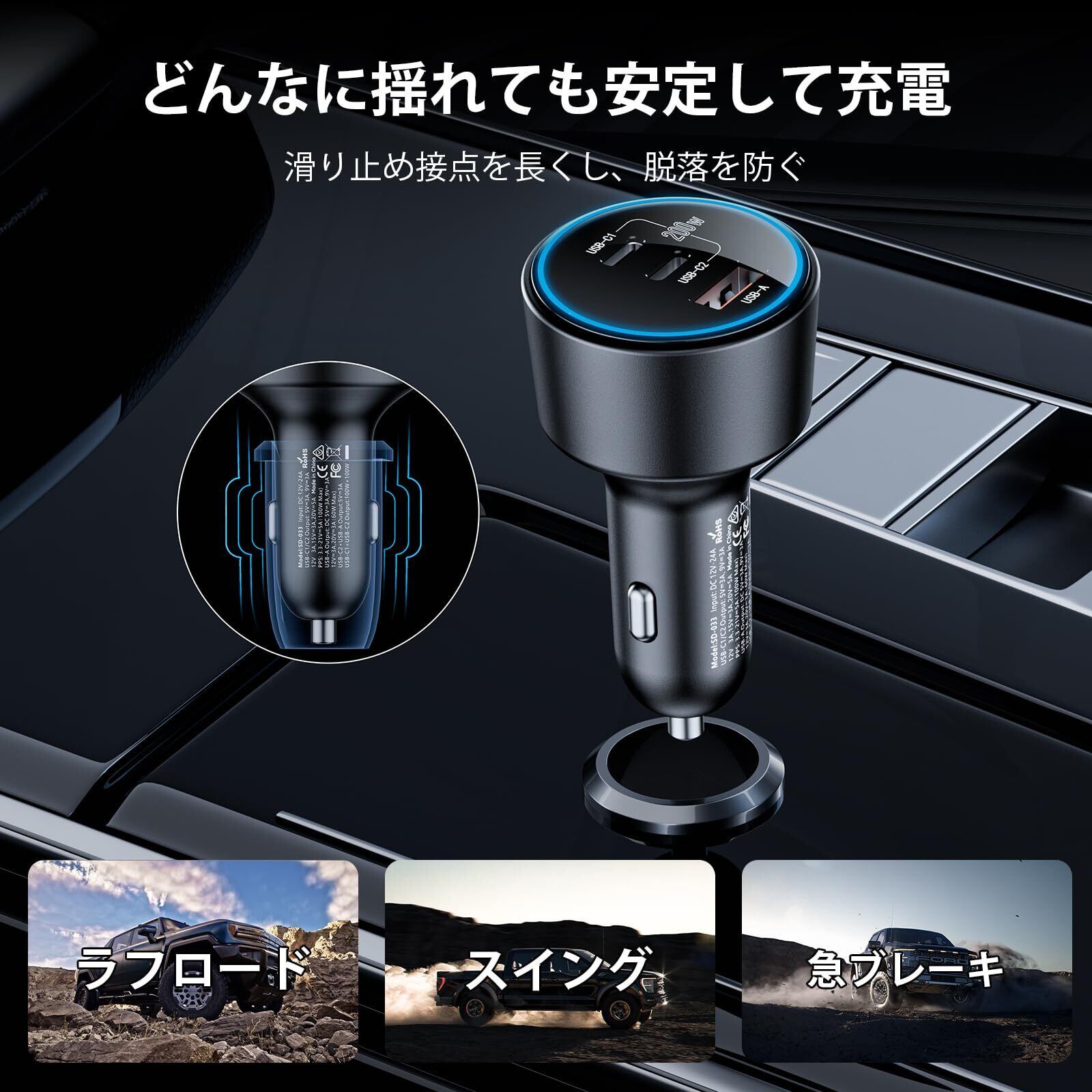・用途:iPhoneの最新モデル(16/15/14/13/12)やGalaxy Sシリーズ、iPad、さらにはMacBookやラップトップにまで対応しているため、様々なシーンでの活躍が期待できます。車の充電器としてはもちろん、旅行や日常の移動時に大変便利なアイテムですので、ぜひご利用ください♪