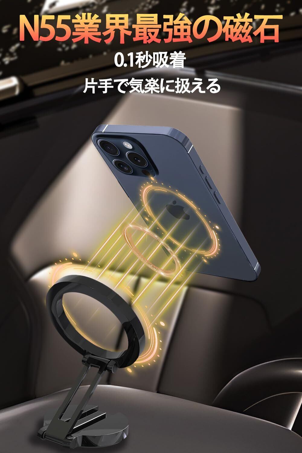 【在庫処分】車載スマホホルダー【N55超強力磁石】magsafe 車載 スマホホルダー 車 360°自由回転 全亜鉛合金 安定性拔群 折りたたみ式 取付簡単 片手操作 マグセーフ 車載 携帯ホルダー カー用品 全機種対応 iPhone 16/15/14/13/12 Pro Max Plus Mini Sony Xperia SHARP Samsung OPPOなどに対応 鏡面ブラック