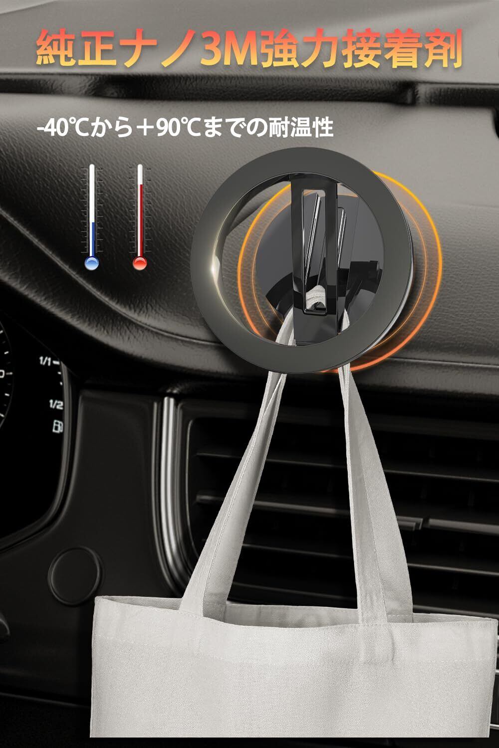 【純正ナノ3M接着剤・取付簡単】耐熱性と耐久性に優れた純正のナノ3M接着剤を使用し、車内の清潔な表面に強力に固定でき、-40℃と90℃の極端な温度で、長時間連続使用しても車スマホホルダーがが外れることはありません。交換用の粘着パッドも付属しているため、安心してご利用ください。(注:粘着力を高めるために、貼った後12時間放置することをお勧めします。)