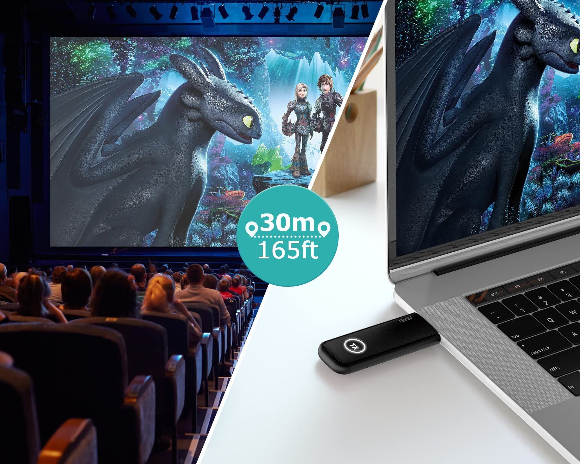 【高解像度&30m無線伝送】ワイヤレスHDMIトランスミッターとレシーバーは優れたビデオ品質、フルHD (1920x1080)のサポートしており、高解像度で鮮やかな色彩なコンテンツを楽しむことができます。高速5Ghz波数帯の利用で、安定伝送をサポートします。HDMI信号を無線で、壁越しでも、最大30Mの信号伝送を実現し、信号の応答速度が速くて安定していて、遅延も画面ちらつきもありません。