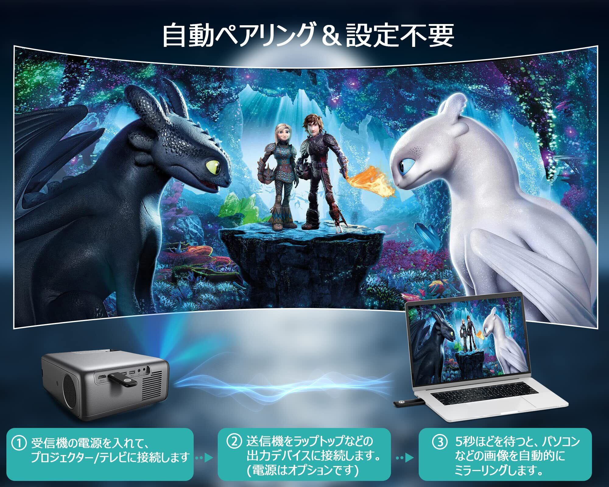 本製品は、複雑な設定が不要で、すぐに使用を開始できます。受信機をテレビに接続し、送信機をパソコンやスマートフォンに接続するだけで、すぐに映像を映し出せます。技術に不安がある方でも安心してご使用いただけます!