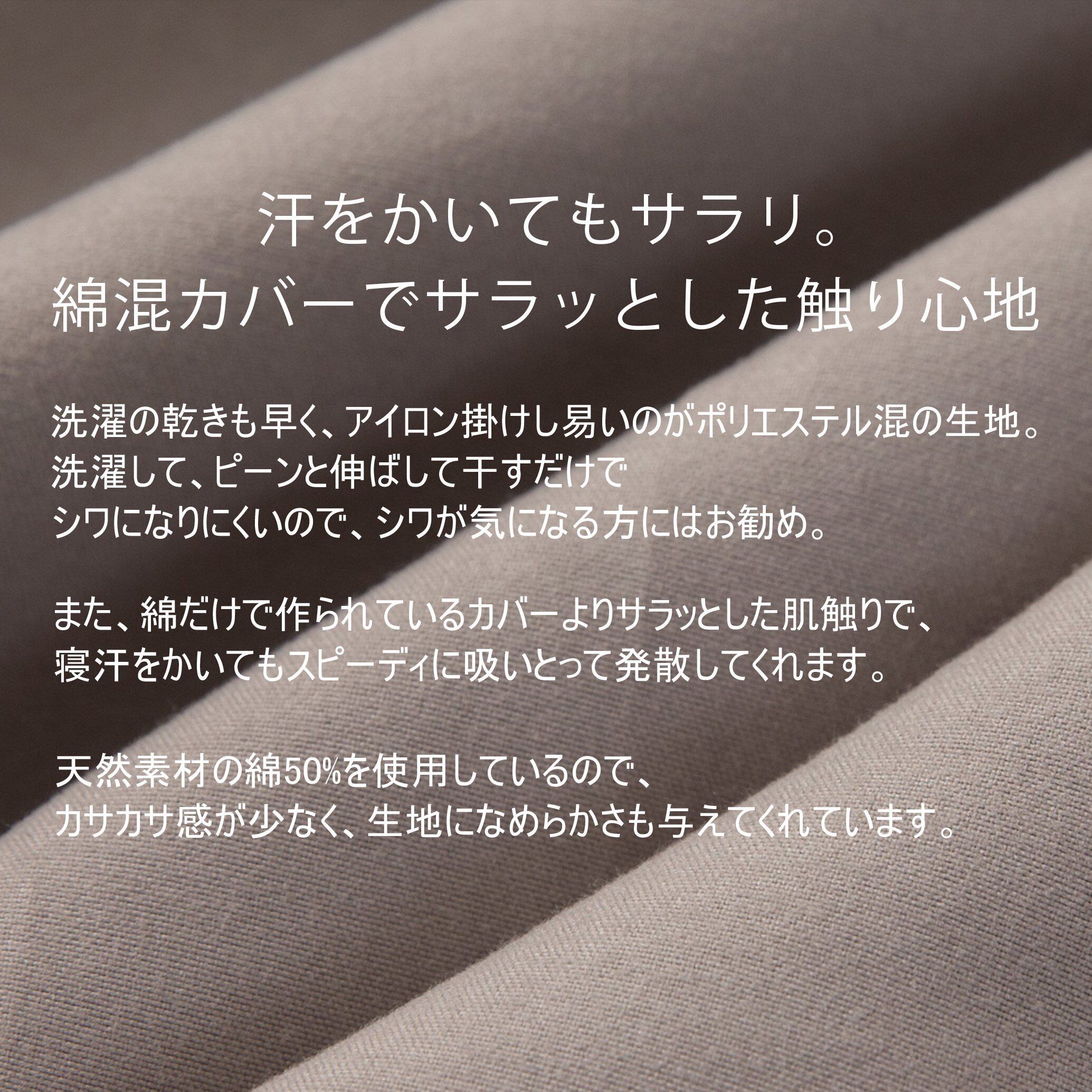 肌触りの良い綿混素材が、優しい眠りをお約束します。クオリティの高い素材で作られているので、使用するたびにその心地よさを実感できることでしょう。