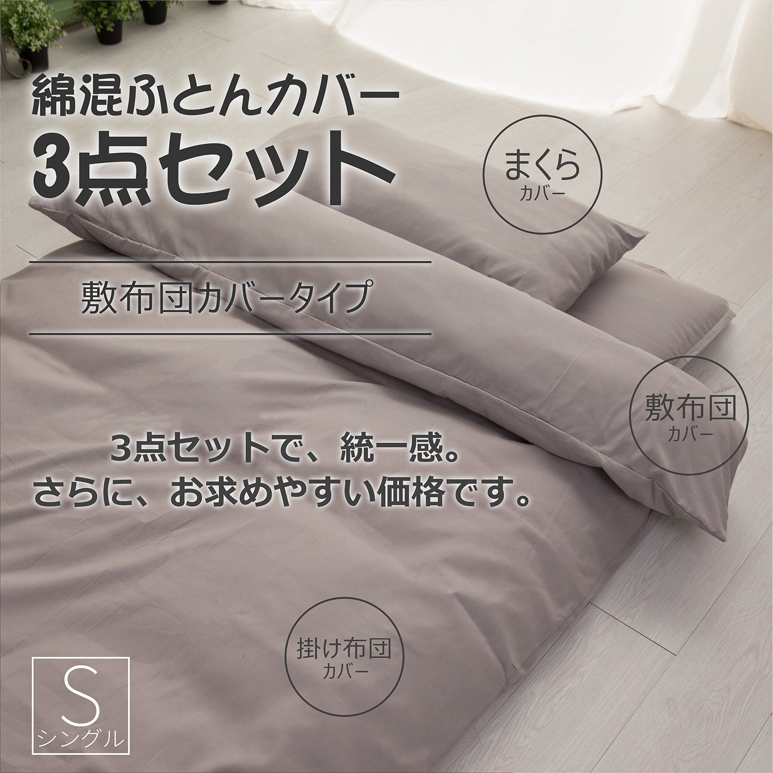 和式 布団カバー シングル 3点セット 綿混 無地 寝具カバー3点セット 掛け布団カバー 敷き布団カバー 枕カバー 洗い替え 防ダニ(グレー)