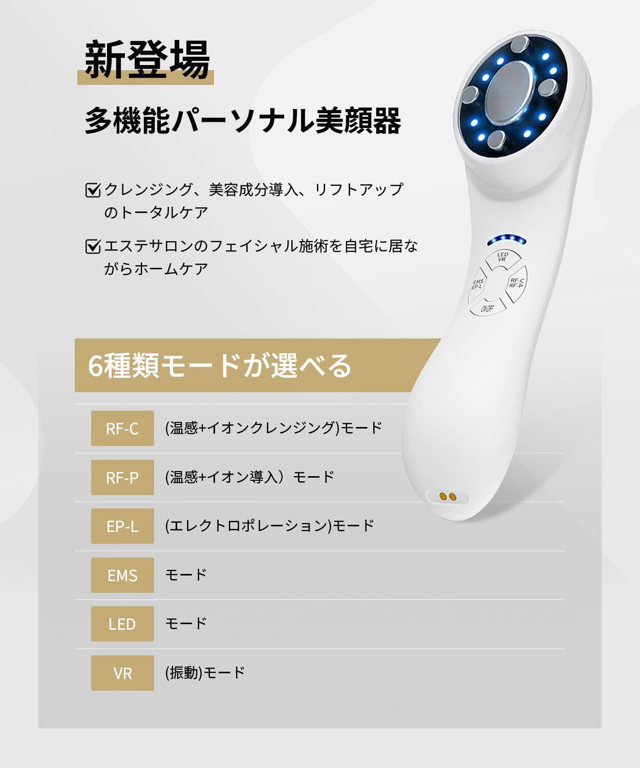 美顔器 リフトアップ EMS RF美顔器 1台多役 イオン導出 イオン導入 3光LED搭載 6種類モード 4段階レベル 毛穴汚れとり イオン美顔器 温感機能 肌引き締め リフトケア 肌ケア 口元ケア フェイスケア 自宅エステ マグネットUSB充電式 男女兼用 誕生日プレゼント 日本語取扱説明書付き