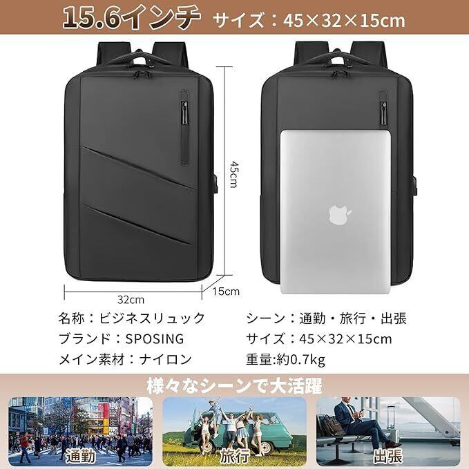 ・内容:この[SPOSING]リュックは、ビジネスとプライベートの両方に対応できる理想的なアイテムです。大容量30Lの設計により、しっかりと荷物を収納でき、旅行や通学、出張など多様なシーンでの利用に最適です。また、USB充電ポートが搭載されているため、スマートフォンなどのデバイスをいつでも簡単に充電可能!快適な毎日をサポートします♪