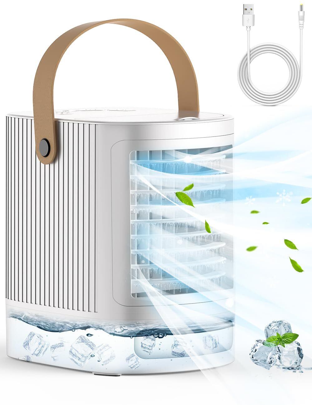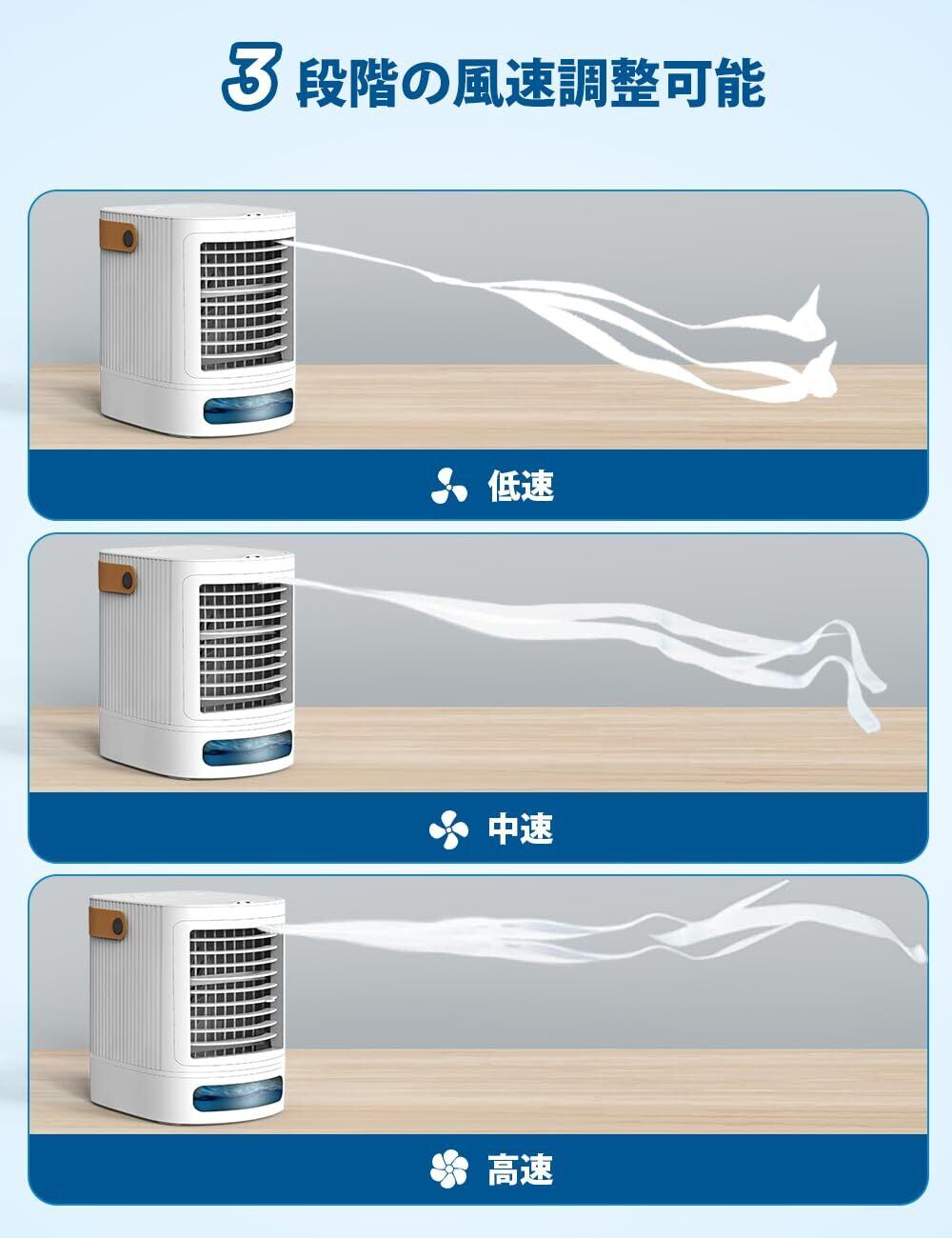 ミニエアコンは、ファン(水や氷なし)、加湿器(水あり)、ポータブルエアコン(氷あり)をコンパクトなボディに組み合わせた製品です。驚くほどの冷却機能は、内蔵された水冷パッドによるものです。水か氷を追加するだけで、熱い風を爽やかな涼しい風に変える様子を見ることができ、リフレッシュする涼しい風の快感を楽しむことができます。