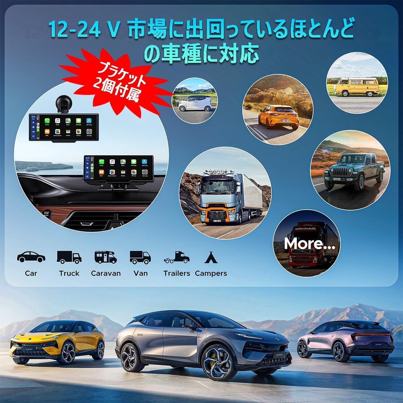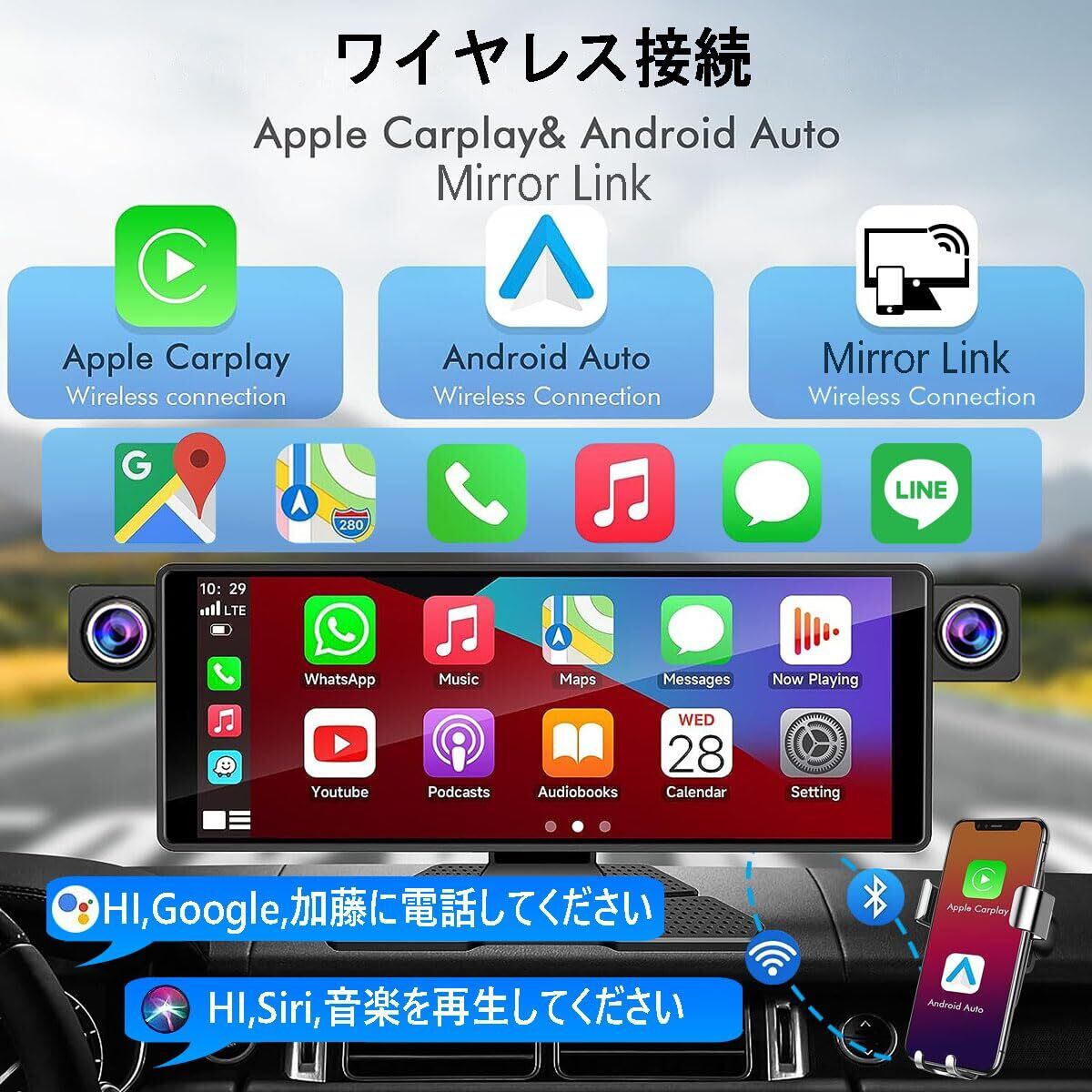・特徴:CarPlayおよびAndroid Autoに対応しているため、スマートフォンの機能を大画面で手軽に利用できます。タッチスクリーン操作により、直感的に操作できるので、運転中もスムーズに情報の確認が可能です。また、無線接続に対応しており、簡単にBluetoothやWiFiでデバイスと接続できます☆