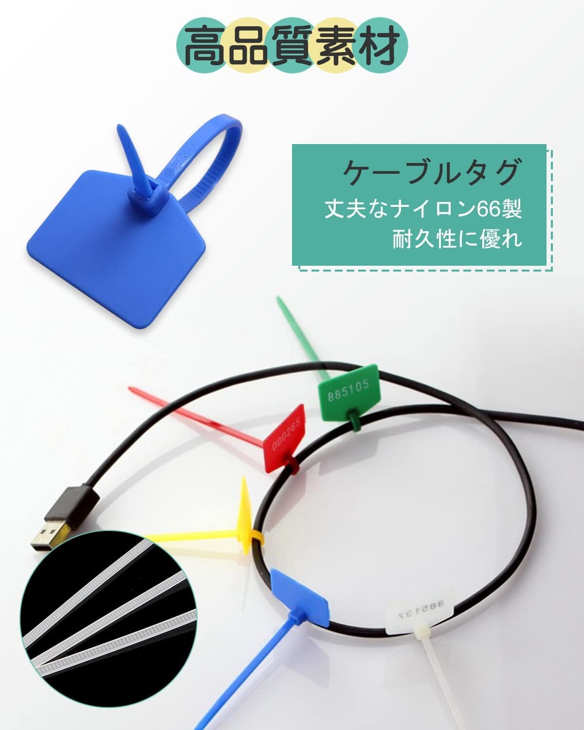 ・特徴:耐久性のあるナイロン製で作られており、しっかりとした材質が特長です☆ネームタグとしてはもちろん、マーカータイやケーブルクリップとしても使える多機能アイテム!結束バンドとして、様々なシーンで活躍します。