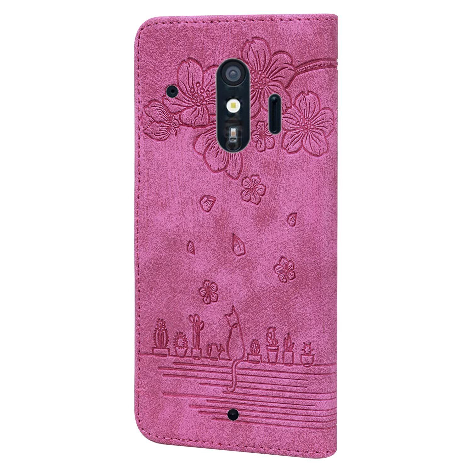 【数量限定】Torskeに適合する Easy Phone F-42A ケース 手帳型 用の Easy Phone F-01L カバー さくら柄 に適合する らくらくスマートフォン F-42A ケース 油絵デザイン ヴィンテージカラー 快適な質感 財布型 用の F-42Aケース カード収納あり 使う便利性 全面保護 向けの らくらくスマートフォン me F-01L 携帯ケース 4.7インチ ローズレッド