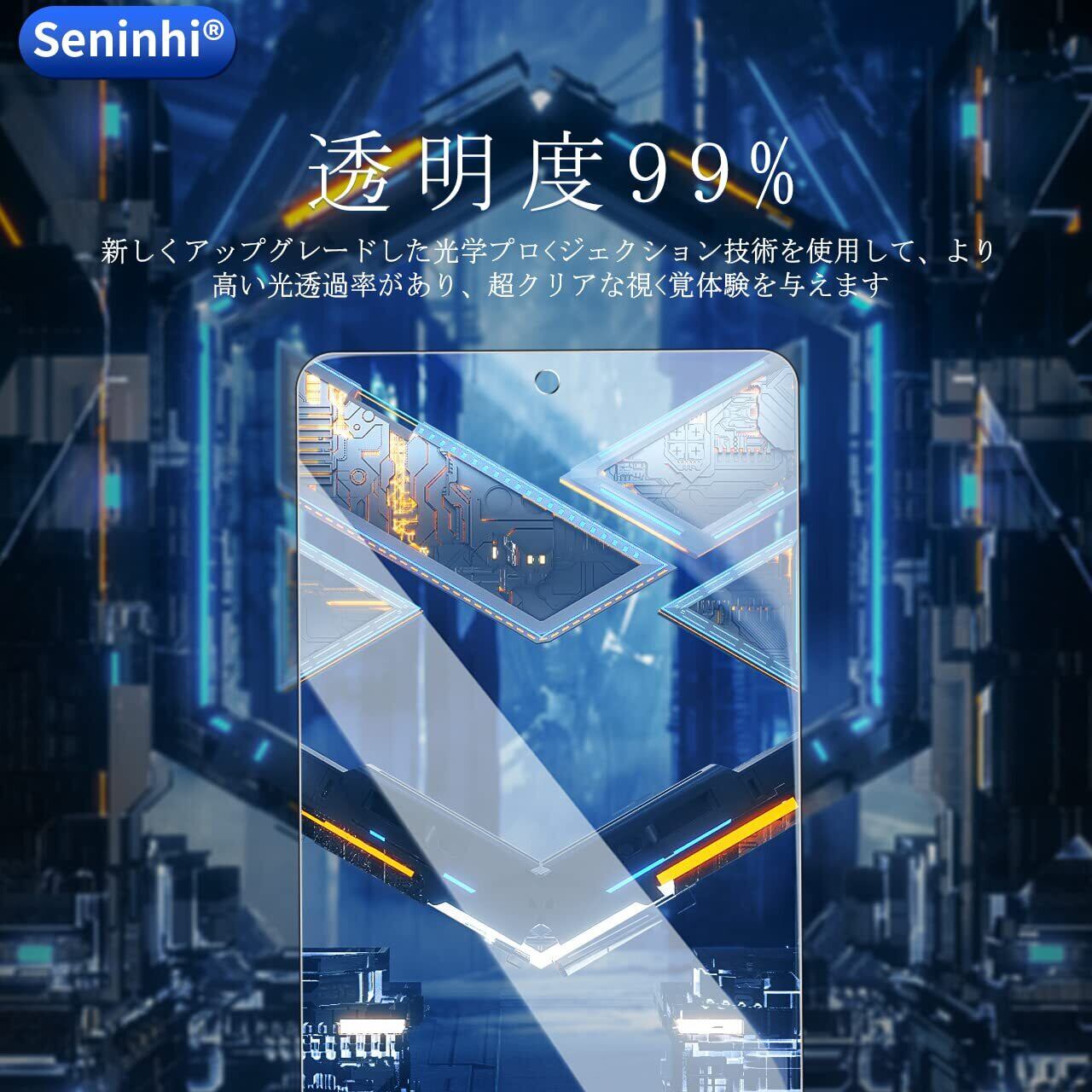 特徴 ①硬度9H ②防指紋 ③衝撃吸収 ④高透過率 ⑤飛散防止 ⑥貼り付け簡単 ⑦気泡なし 極薄 ⑧高感度