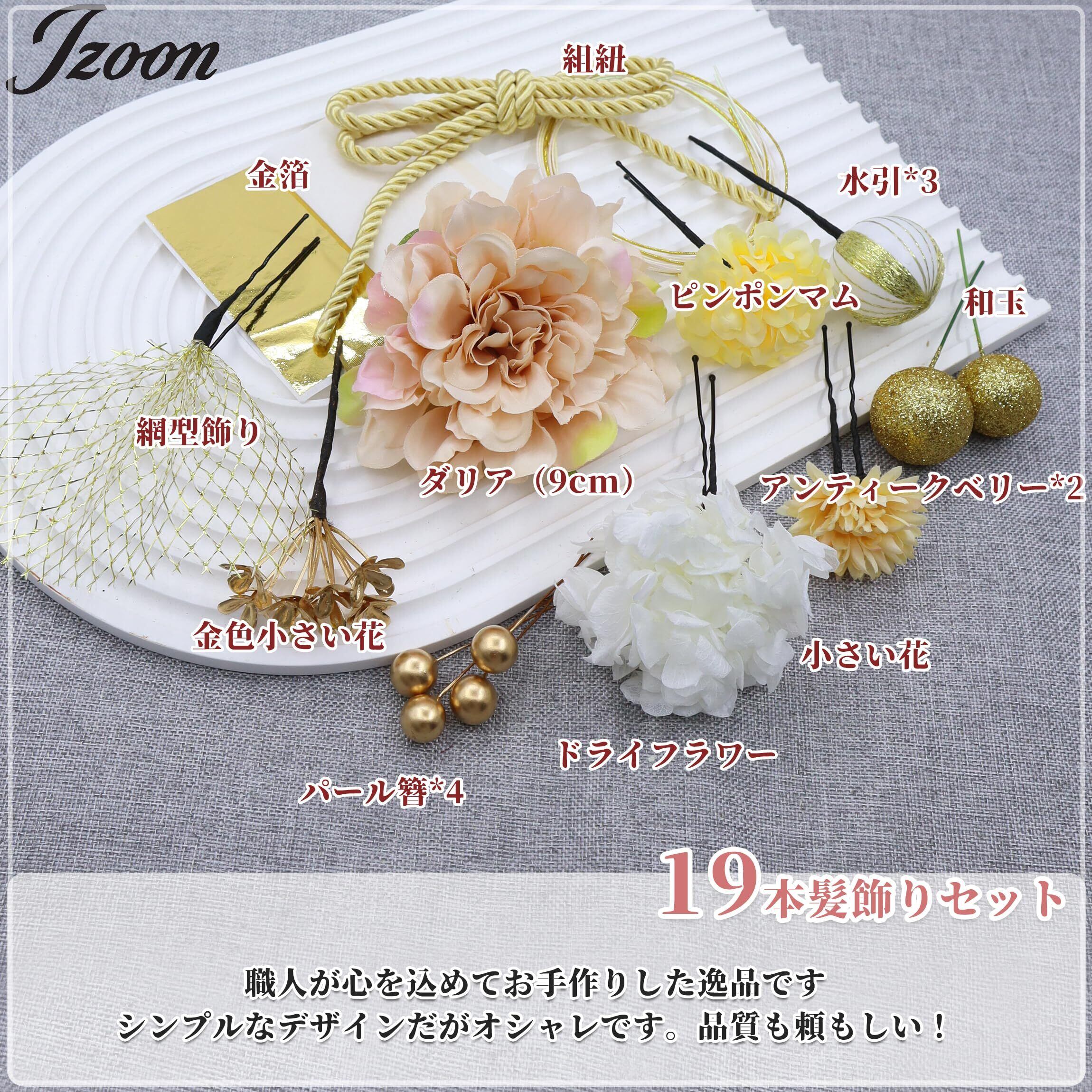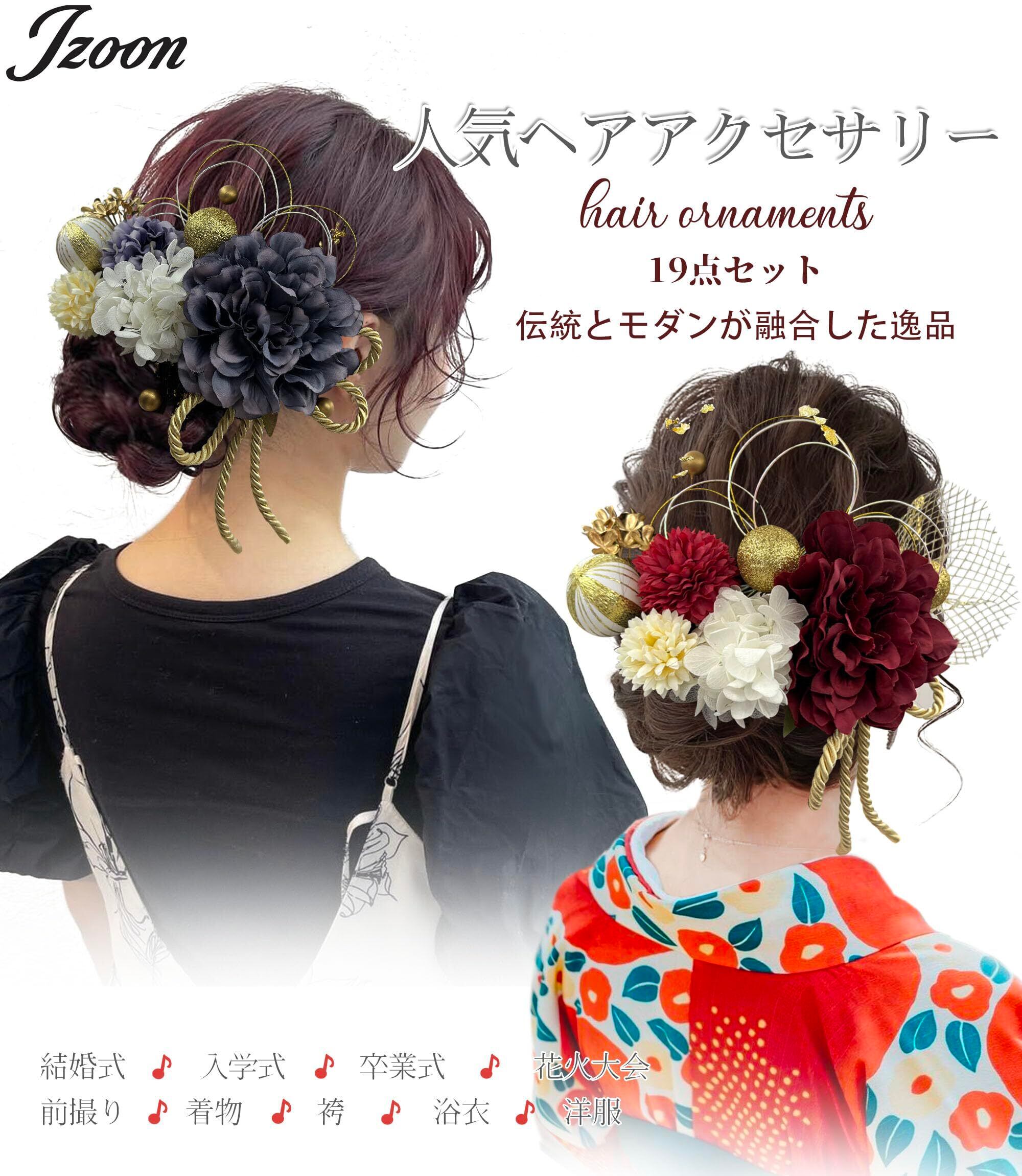 【人気商品】[JZOON] 成人式 髪飾り【10色展開】 ドライフラワー ダリア あじさい かすみ草 造花飾り ヘアアクセサリー 和玉 赤 ゴールド 水引 ヘッドパーツ 振袖 着物 卒業式 七五三 浴衣 袴 結婚式用 手作り 専用ケース付き Y3330