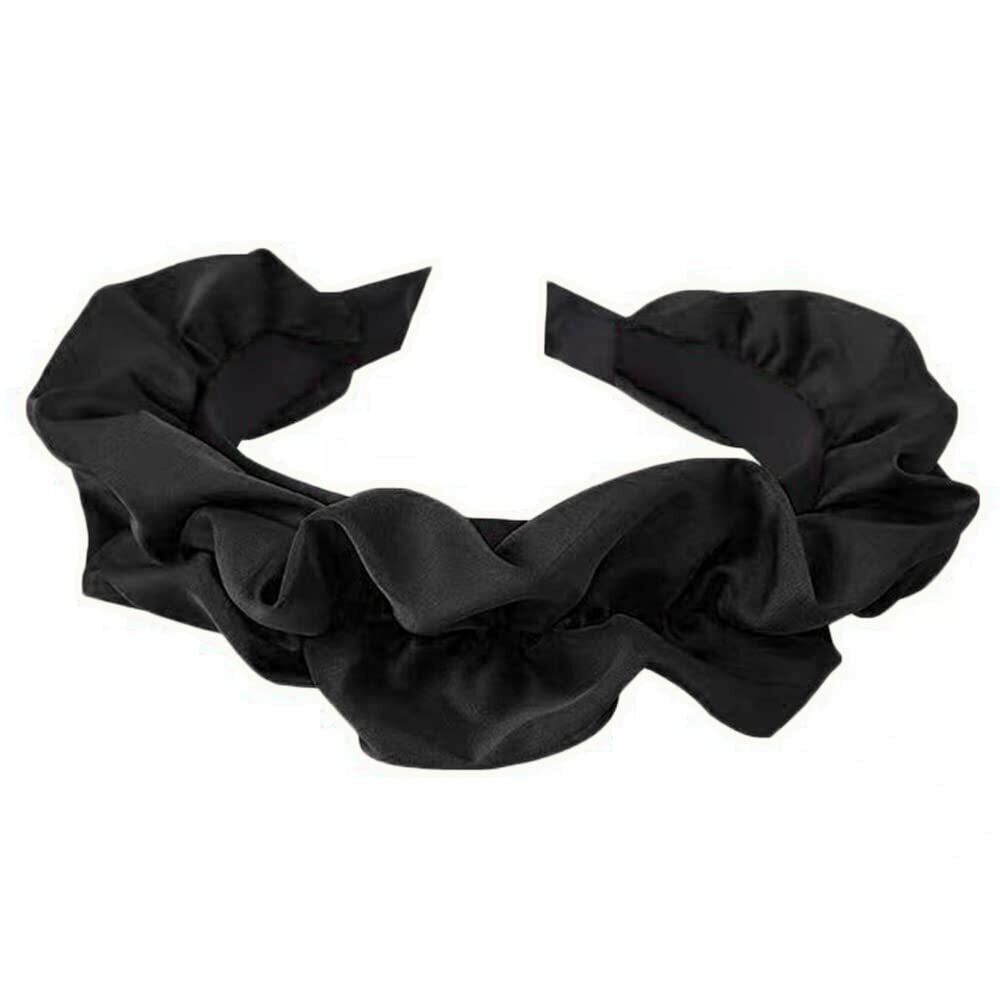 【在庫セール】カチューシャ フリル 黒 サテン 日常使う シンプル フリルカチューシャ 痛くない 太め 無地 幅広 ヘアバンド 上品 ヘアアクセサリー かわいい おしゃれ シンプル 無地 レディース