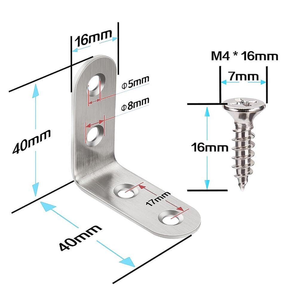 ・特徴:高品質なステンレス製で、耐久性と錆びにくさを追求しました☆ L字型のアングルブラケットは、しっかりとした固定ができ、特にコーナー部分の強化に役立ちます。精密な寸法(40*40*16mm)は、さまざまな用途での使用に最適です。