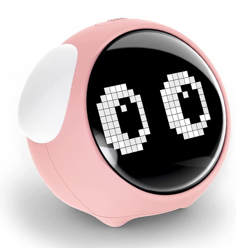 子供用 目覚まし時計 子どもめざまし時計 こどもめざましとけい キッズ用置き時計 GePavinDaダイナミックエクスプレッション時計 音声制御ナイトライト スヌーズ機能付き 5つのアラーム音楽 usb充電式 日本語説明書付 (ピンク)
