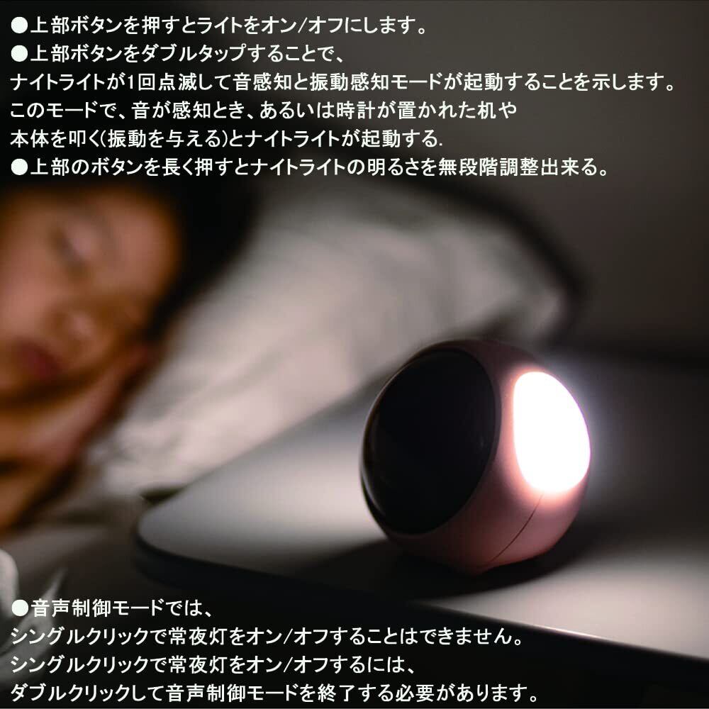 ・特徴:音声制御機能付きのナイトライトを搭載しており、眠る前のリラックスタイムを演出します!また、スヌーズ機能を利用することで、もう少し寝たい時にも非常に便利です。さらに、5つのアラーム音楽からお好きな音を選べるので、毎朝新しい気持ちで目覚めることができます♪