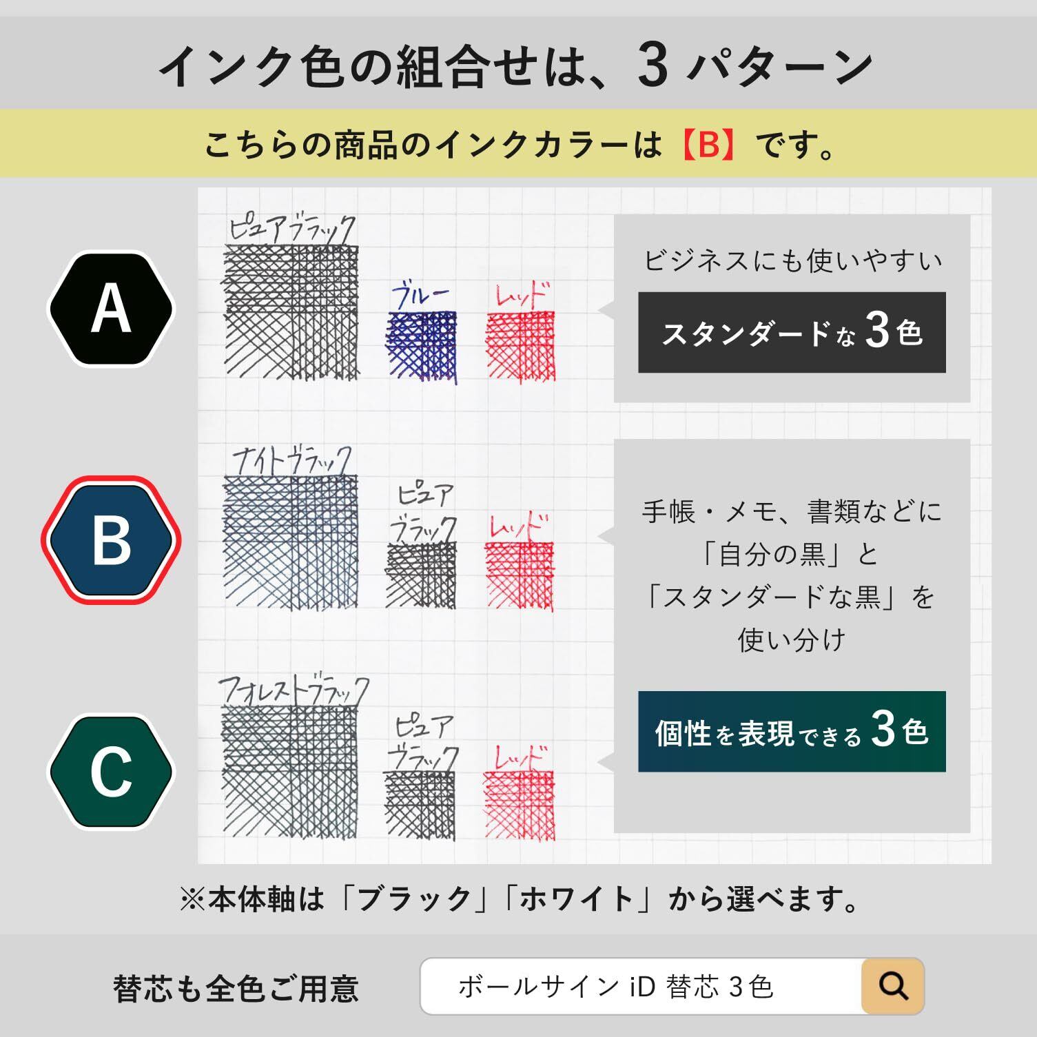 【インク色】Bパターン(ナイトブラック,ピュアブラック,レッド)。さりげなく個性を表現できる3色。