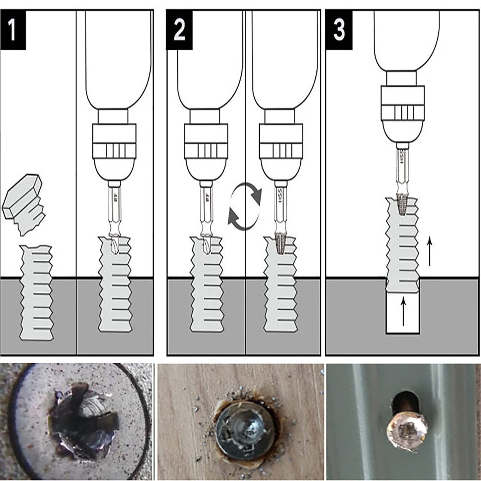 【使いやすくて便利】ほんの数ステップで作業が完了します。適切なサイズのドライバーを使用してカットサイズの穴を開け、抽出ツールを使用してネジまたはボルトをそっと引き出します。