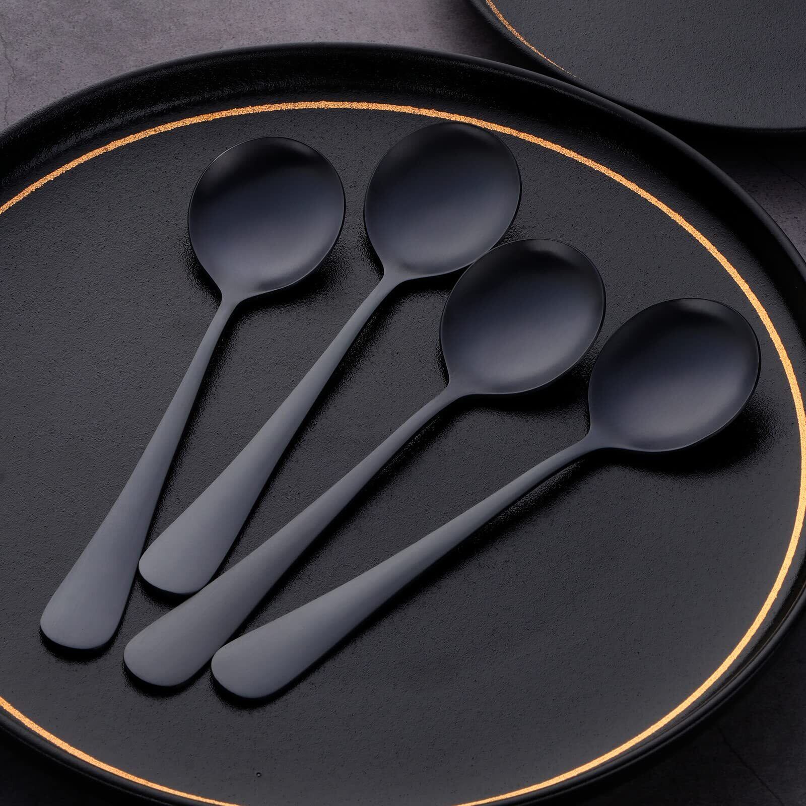 カレースプーン ブイヨンスプーン 4本 ブラック おしゃれ 18-0ステンレス 艶消し サテン仕上げ 食洗器使用可