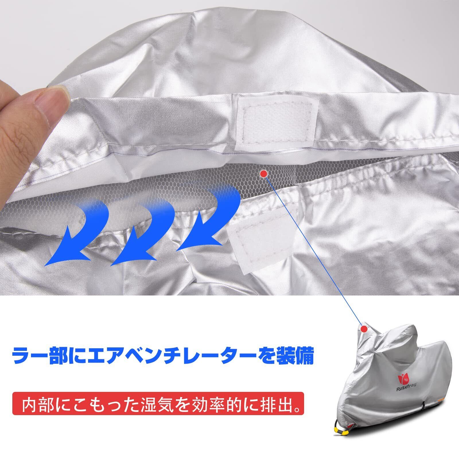 Rosefray バイク カバー 3L-4L 240cmまで対応 スマートサイズ 高機能 撥水 UVカット 210D 大型 車体カバー 収納バッグ付( シルバー)
